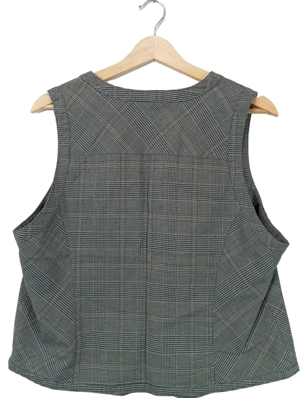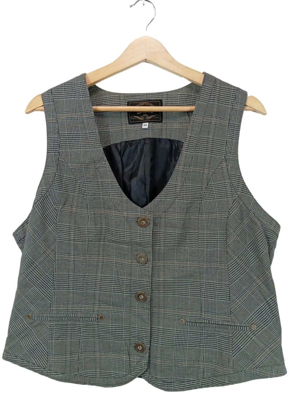- V-Ausschnitt, Knopfverschluss, Paspeltaschen, Karomuster, Business-Look, klassischer Stil, Vintage-Look