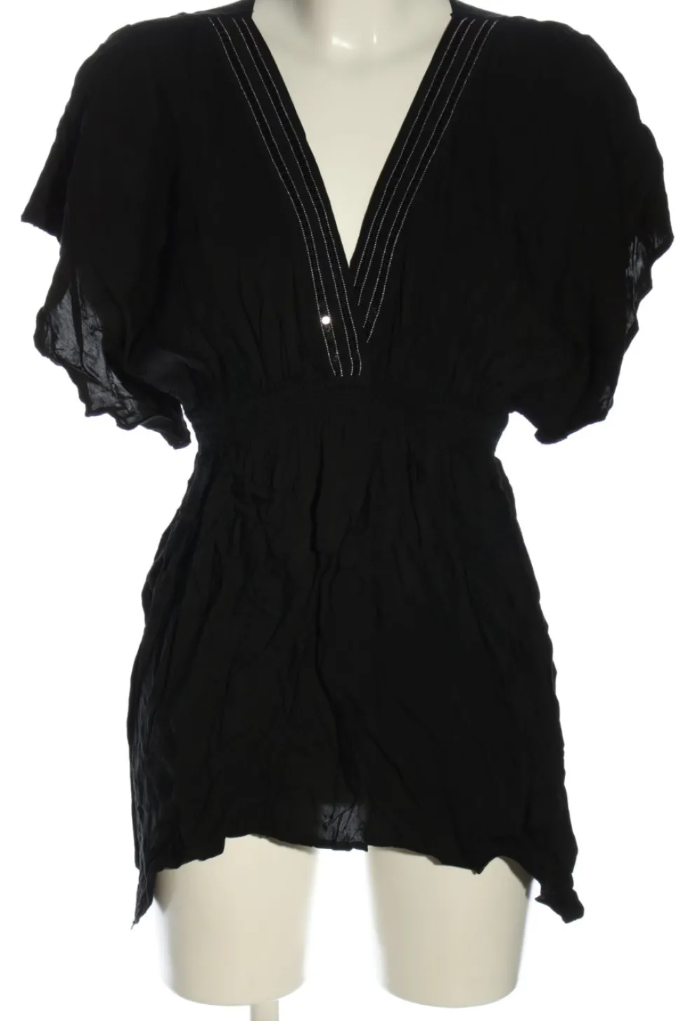 - V-Ausschnitt, Wickelausschnitt, Bund am Ärmelsaum, Casual-Look, Elegant, Glanz-Optik, schlichter Stil, Transparenz-Optik