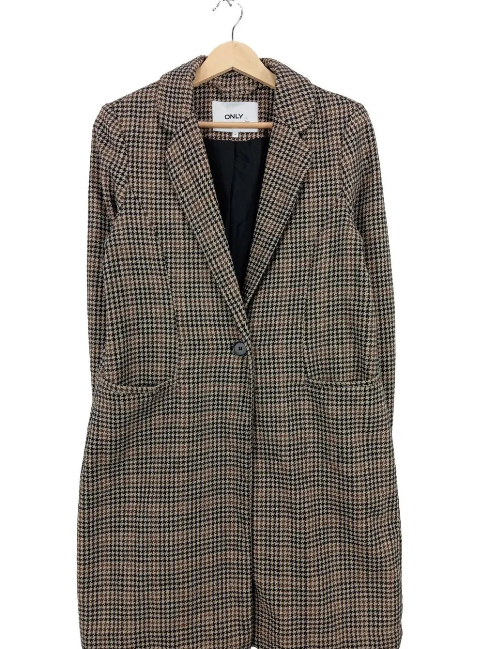- Only bodenlanger Mantel, wollweiß Karomuster