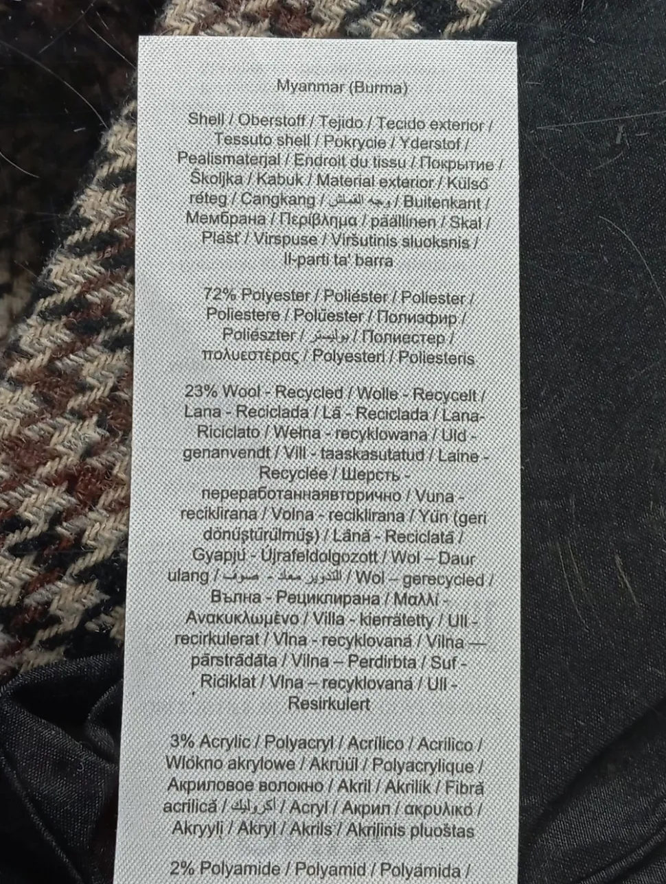 - Außenmaterial: 72% Polyester, 23% Wolle, 3% Polyacryl, 2% Polyamid