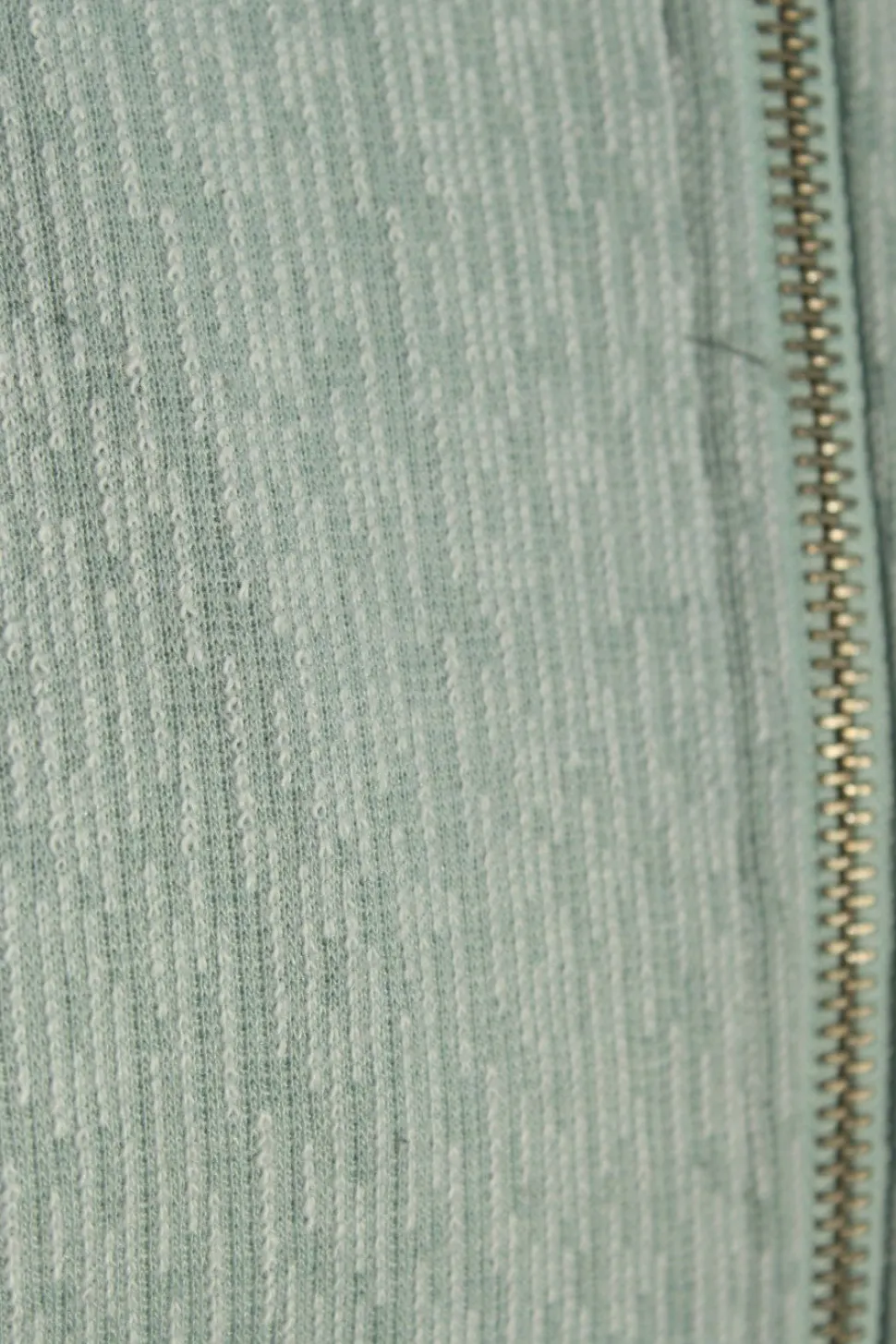 - V-Ausschnitt, Manschetten, Reißverschluss, Leistentaschen, meliert, Streifenmuster, Casual-Look, Elegant, schlichter Stil, Street-Fashion-Look