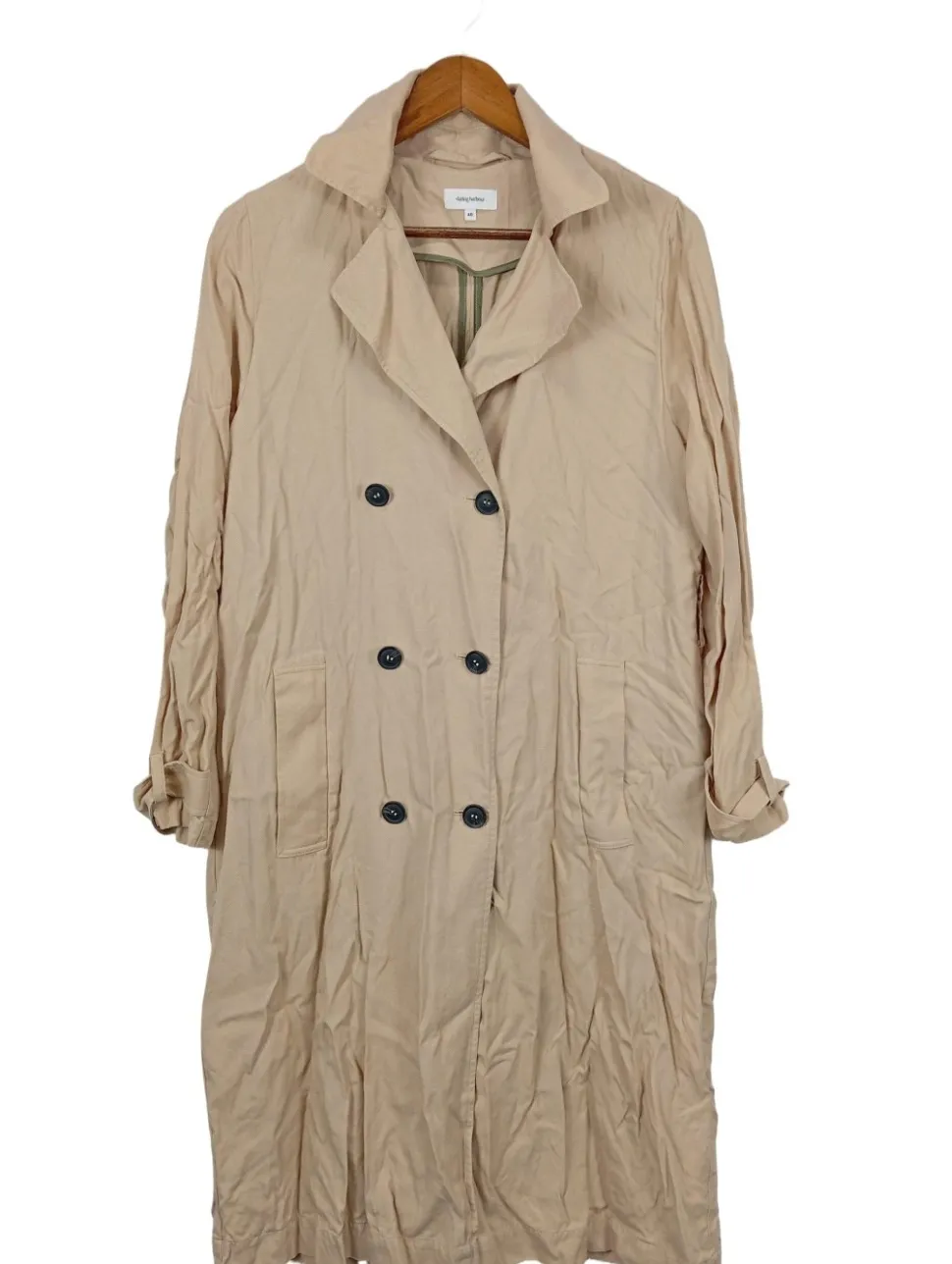 - V-Ausschnitt, Reverskragen, Ärmelriegel, doppelreihiger Knopfverschluss, Leistentaschen, Casual-Look, schlichter Stil, Street-Fashion-Look