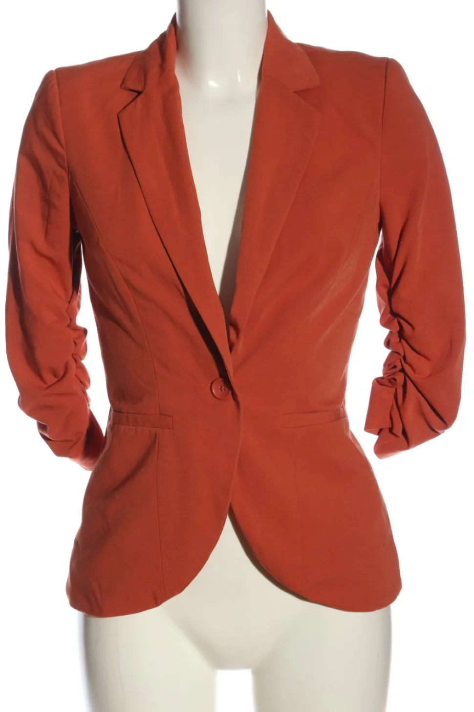 - tiefer V-Ausschnitt, Umlegekragen, Falten am Ärmelsaum, Knopfverschluss, Flügeltaschen, Leistentaschen, Business-Look, Casual-Look, klassischer Stil