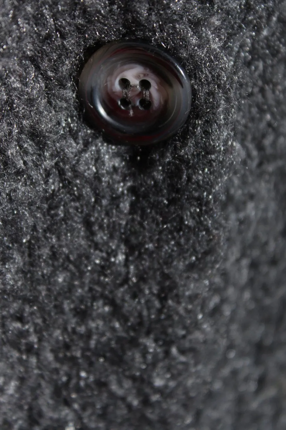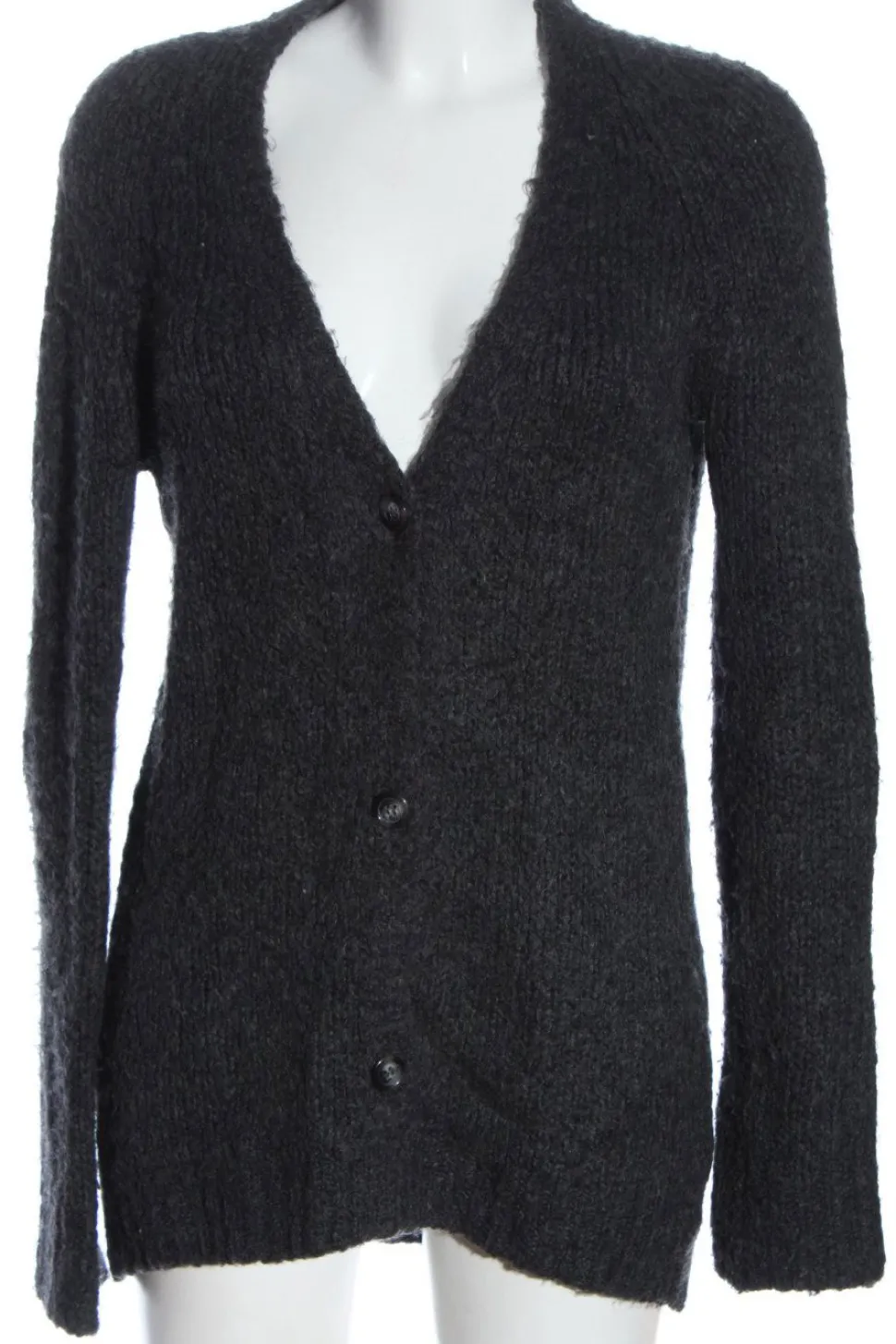 - tiefer V-Ausschnitt, angeschnittener Kragen, offene Kanten am Ärmelsaum, Knopfverschluss, Webmuster, Casual-Look, schlichter Stil, Street-Fashion-Look