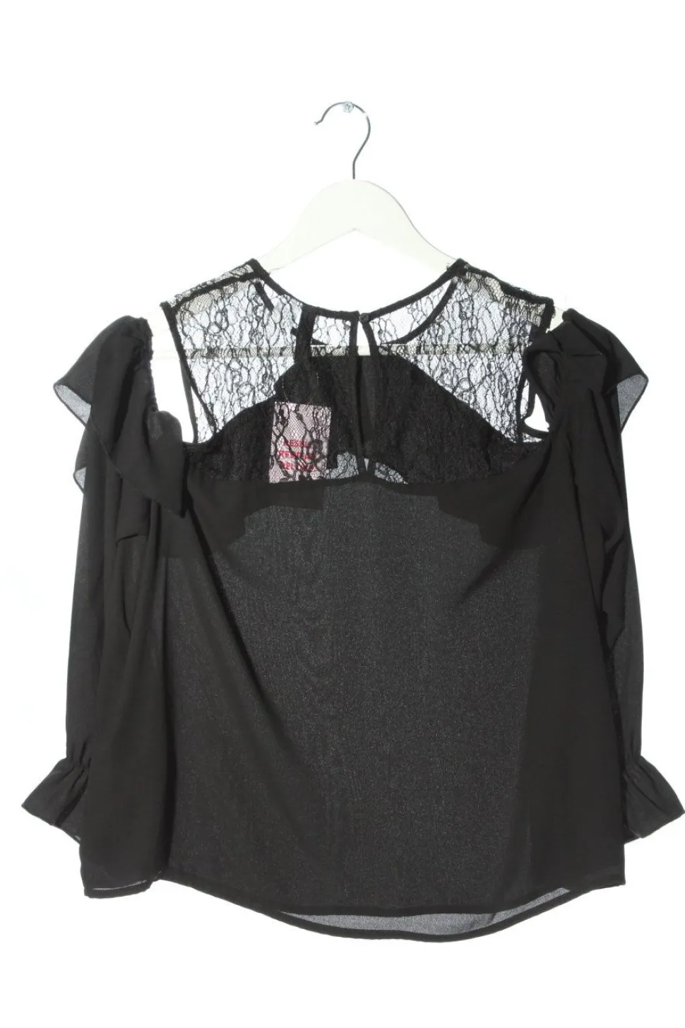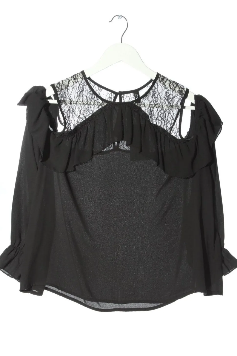 - U-Ausschnitt, Wellkanten am Ärmelsaum, Knopfverschluss hinten, Casual-Look, Elegant, Transparenz-Optik