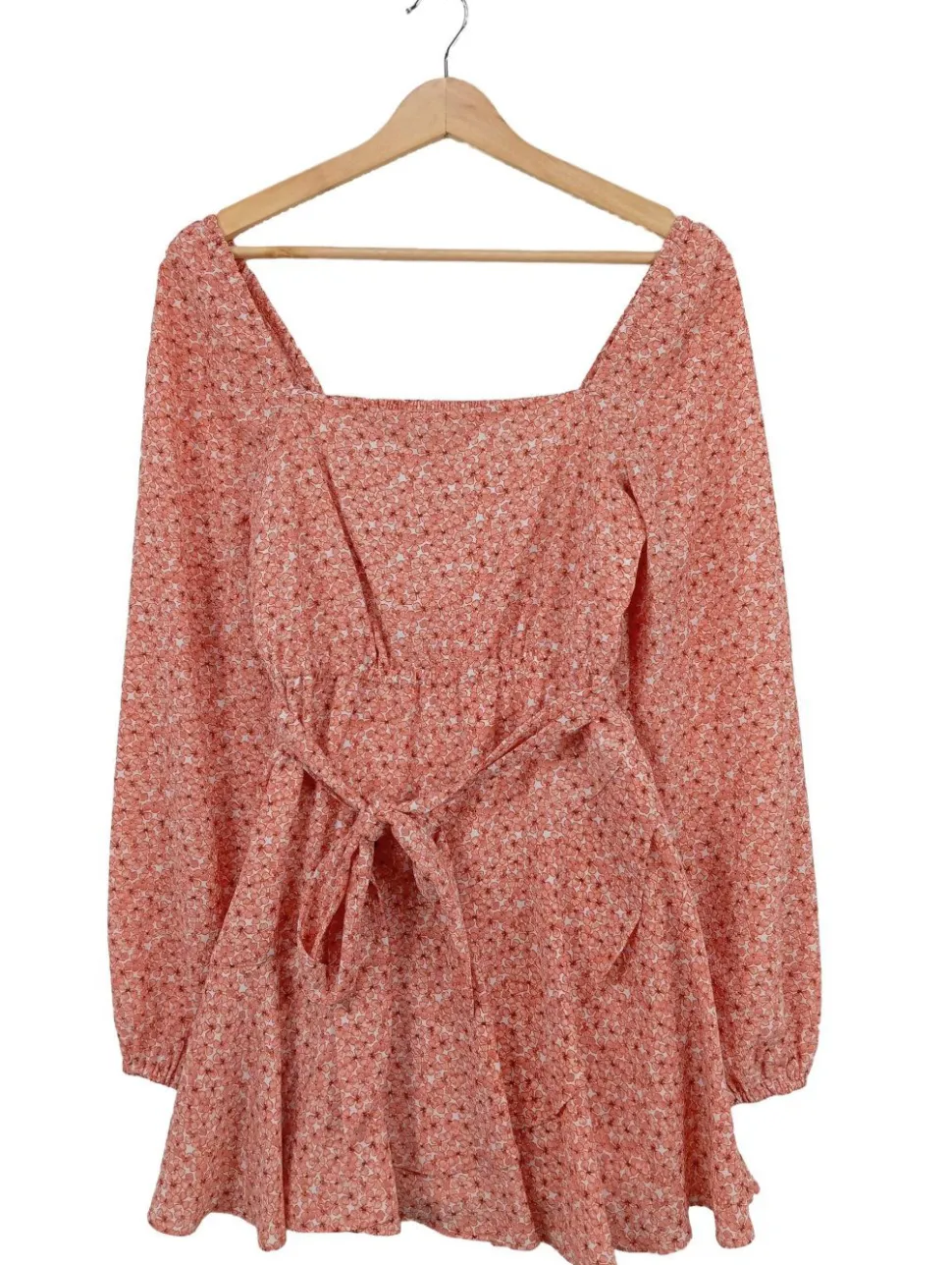- Kareeausschnitt, Knotenverschluss, Allover-Druck, Blumenmuster, Casual-Look, schlichter Stil, Vintage-Look