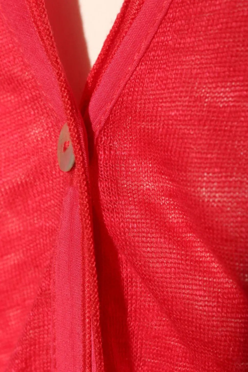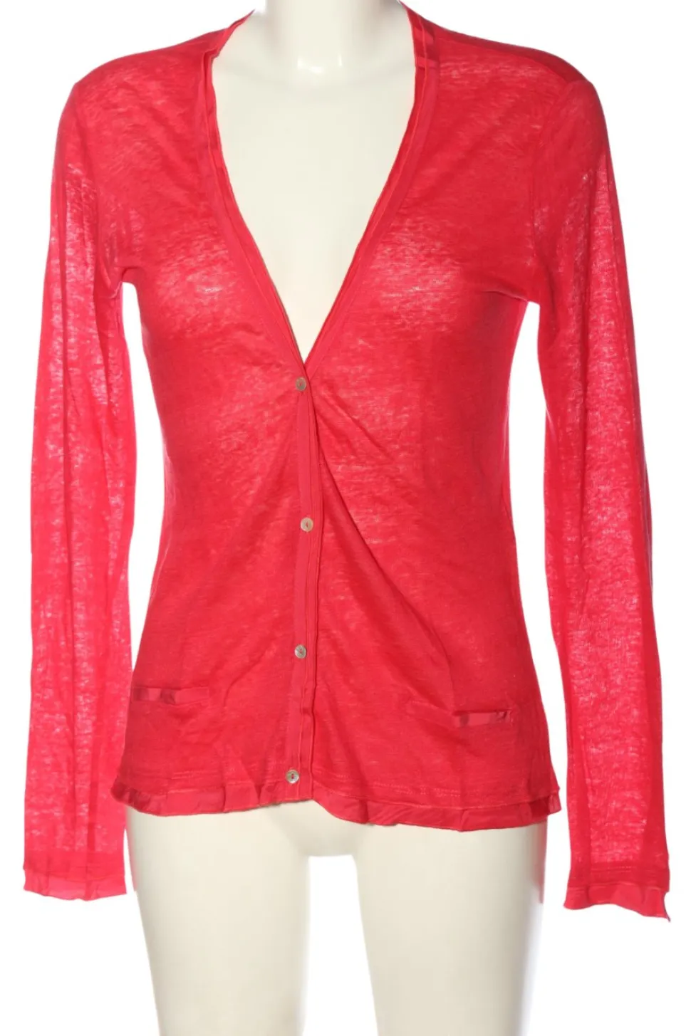 - tiefer V-Ausschnitt, angeschnittener Kragen, offene Kanten am Ärmelsaum, Knopfverschluss, Eingriffstaschen, Leistentaschen, Casual-Look, Elegant, Transparenz-Optik