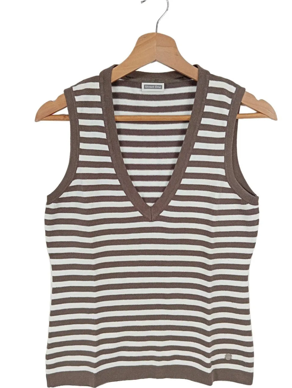 - Street One Feinstrickpullunder, braun-weiß Streifenmuster