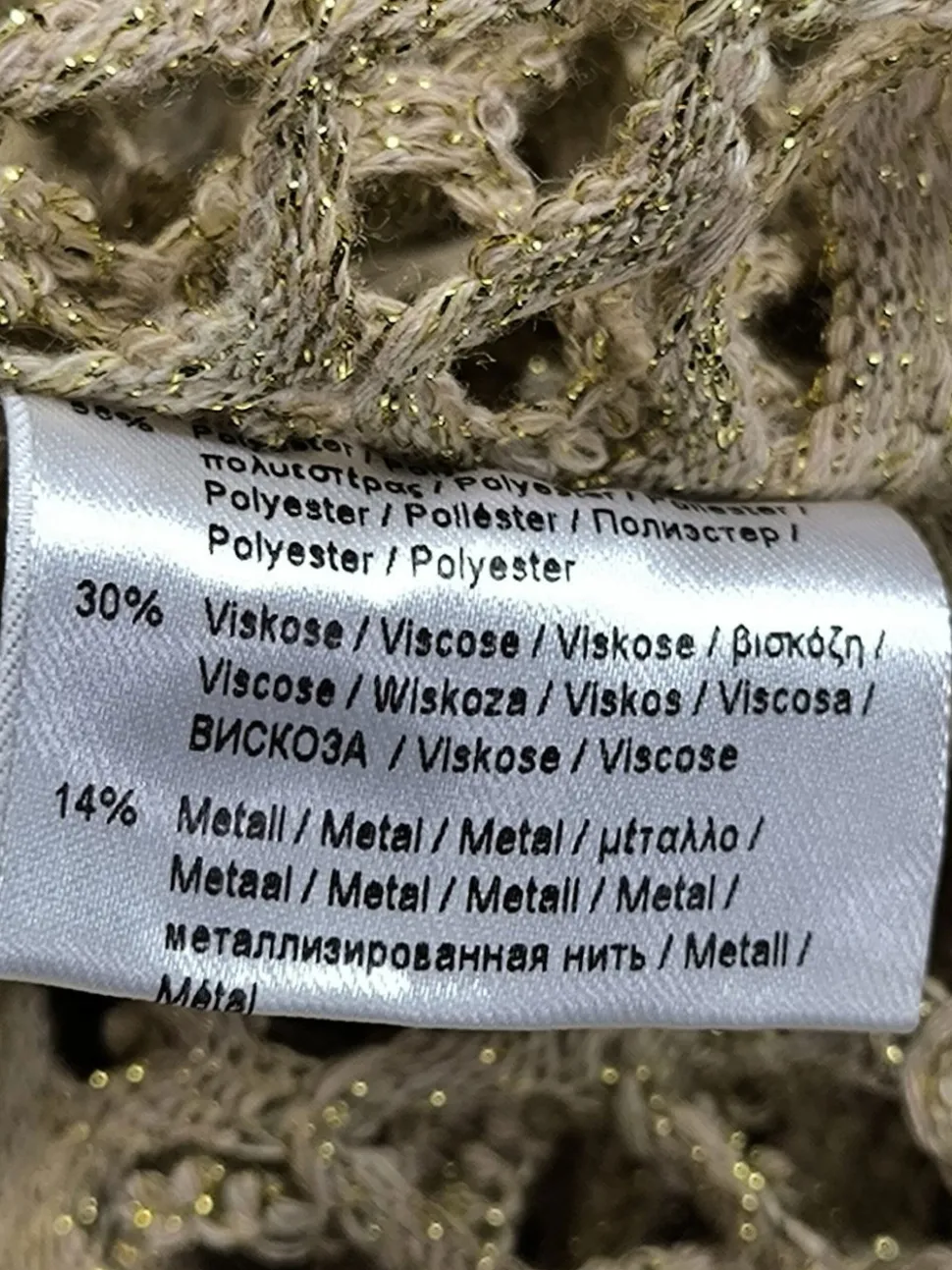 - Außenmaterial: 56% Polyester, 30% Viskose, 14% Metall