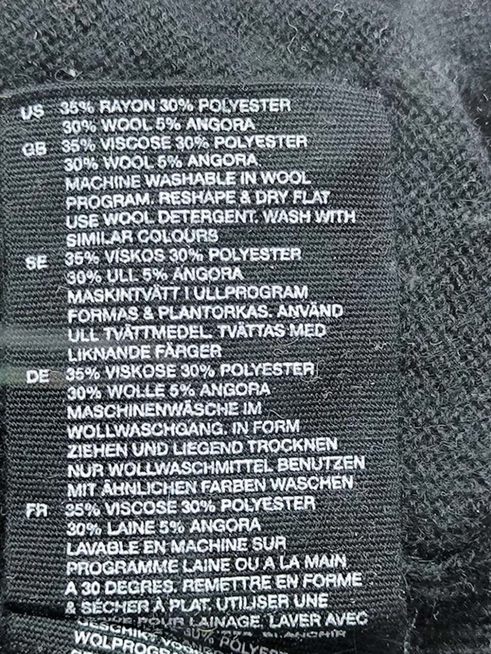 - Außenmaterial: 35% Viskose, 30% Polyester, 30% Wolle, 5% Angora/Wolle/Tierhaar