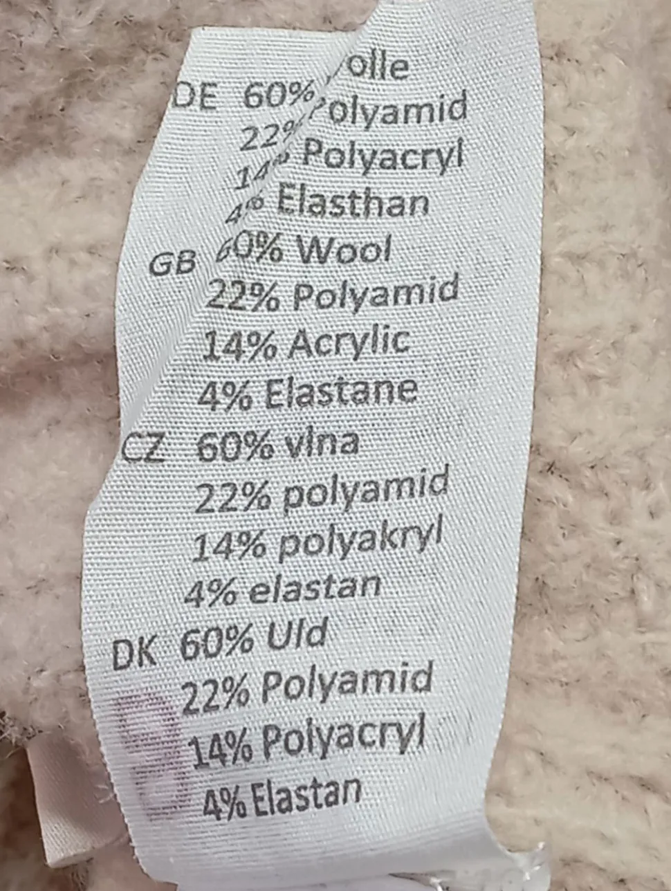 - Außenmaterial: 60% Wolle, 22% Polyamid, 14% Polyacryl, 4% Elasthan