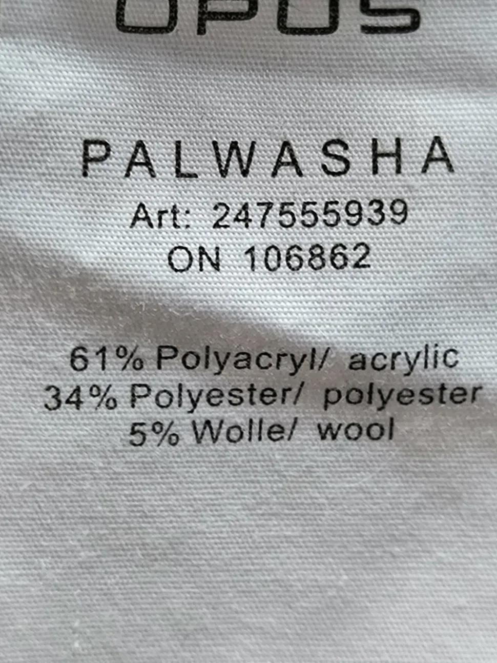 - Außenmaterial: 61% Polyacryl, 34% Polyester, 5% Wolle