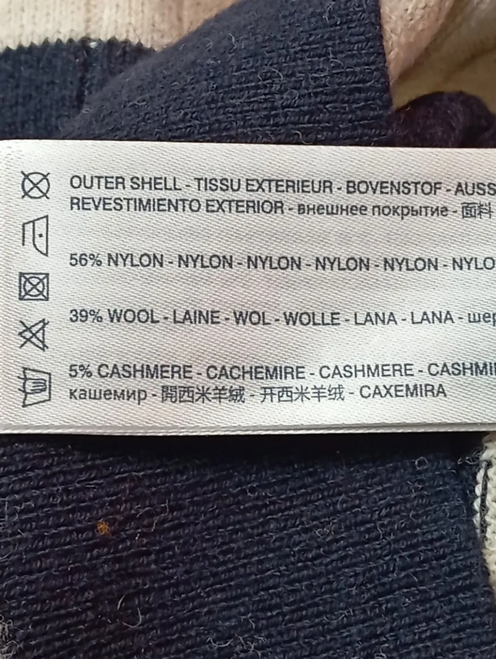 - Außenmaterial: 56% Nylon, 39% Wolle, 5% Kaschmir