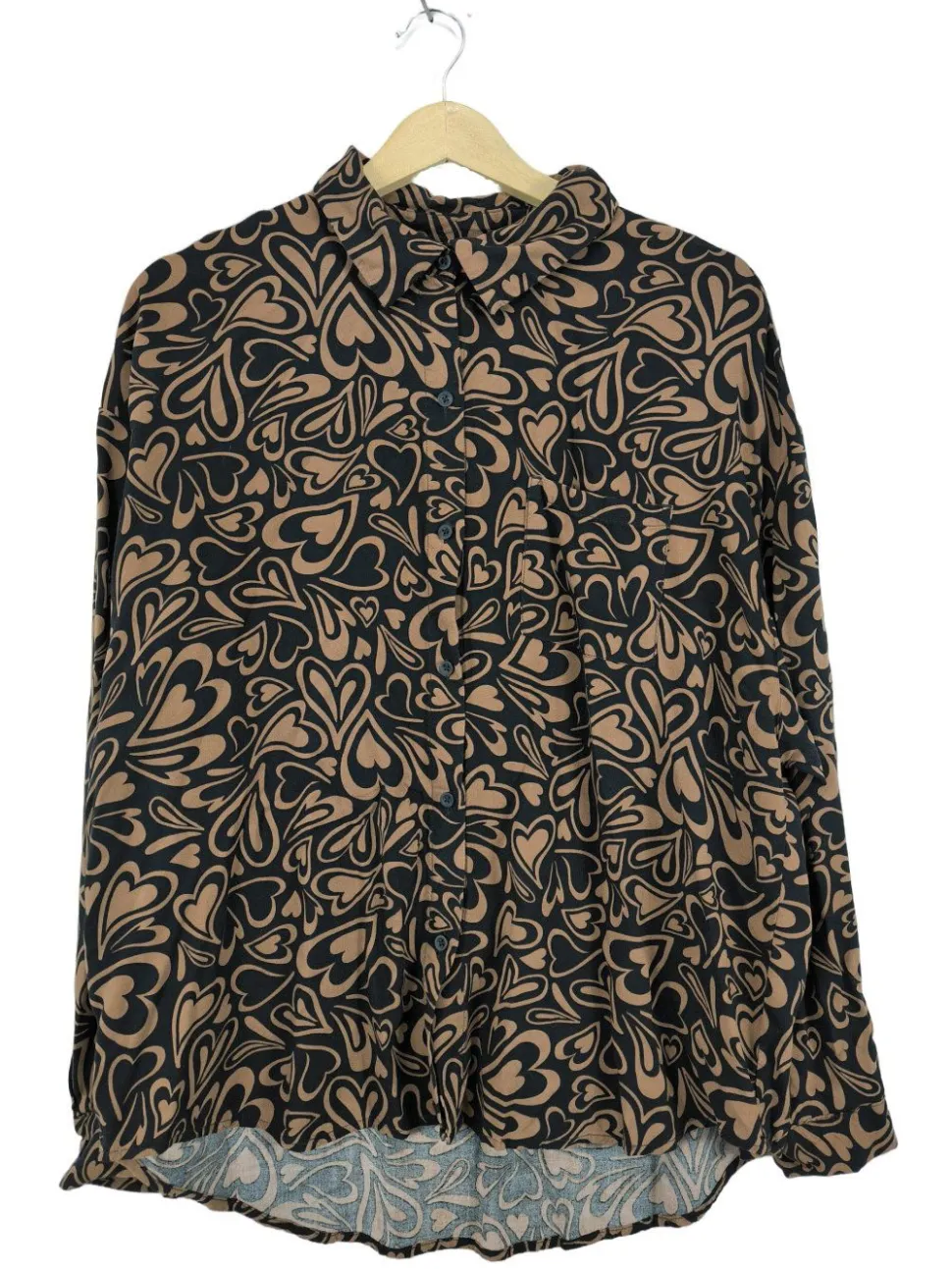 - Clockhouse Hemd-Bluse, schwarz-braun Allover-Druck