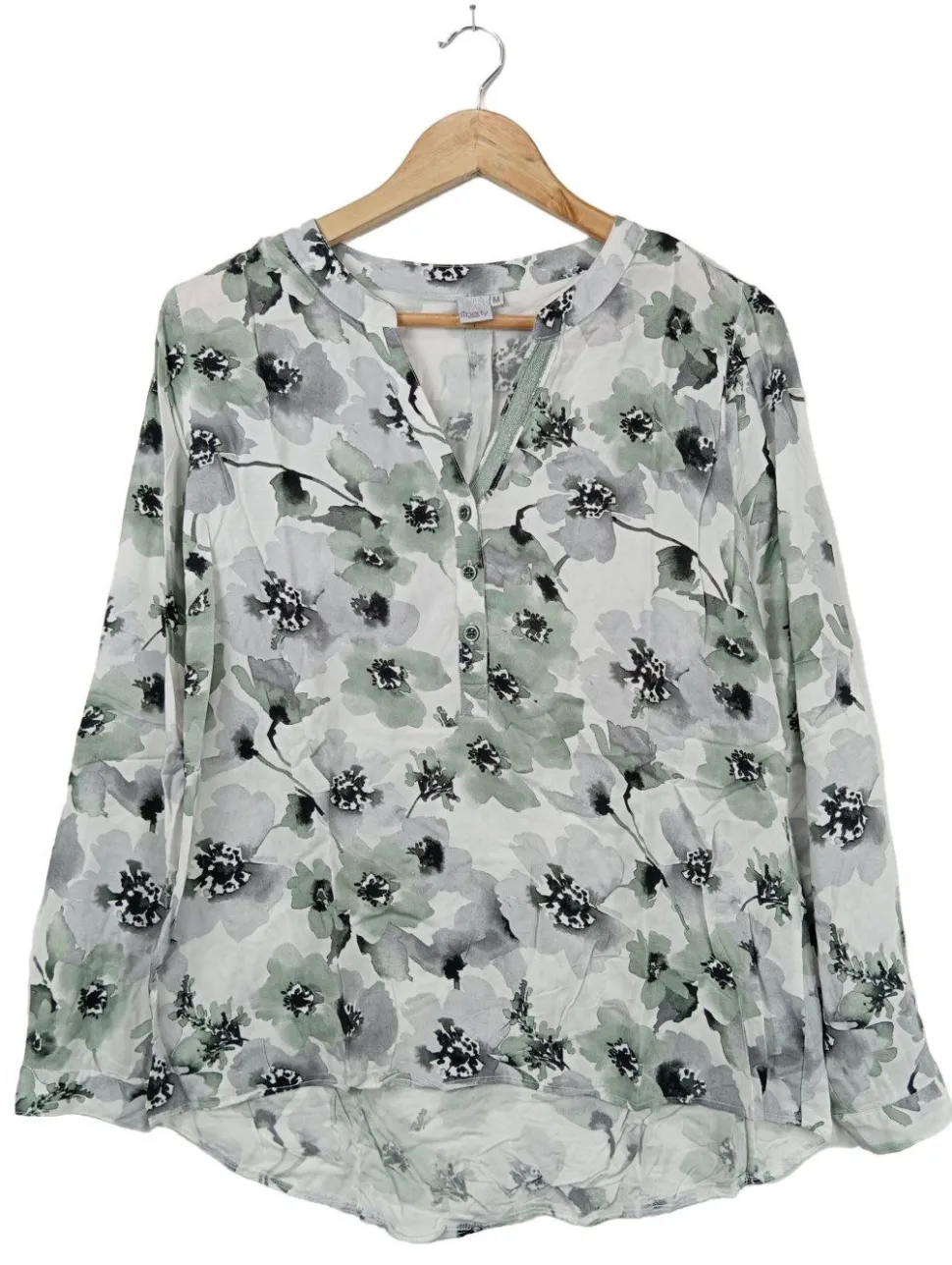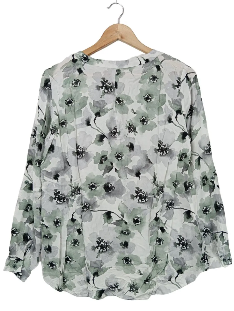 - V-Ausschnitt, Knopfverschluss am Ärmelsaum, Knopfverschluss, Allover-Druck, Blumenmuster, Casual-Look, Elegant, schlichter Stil