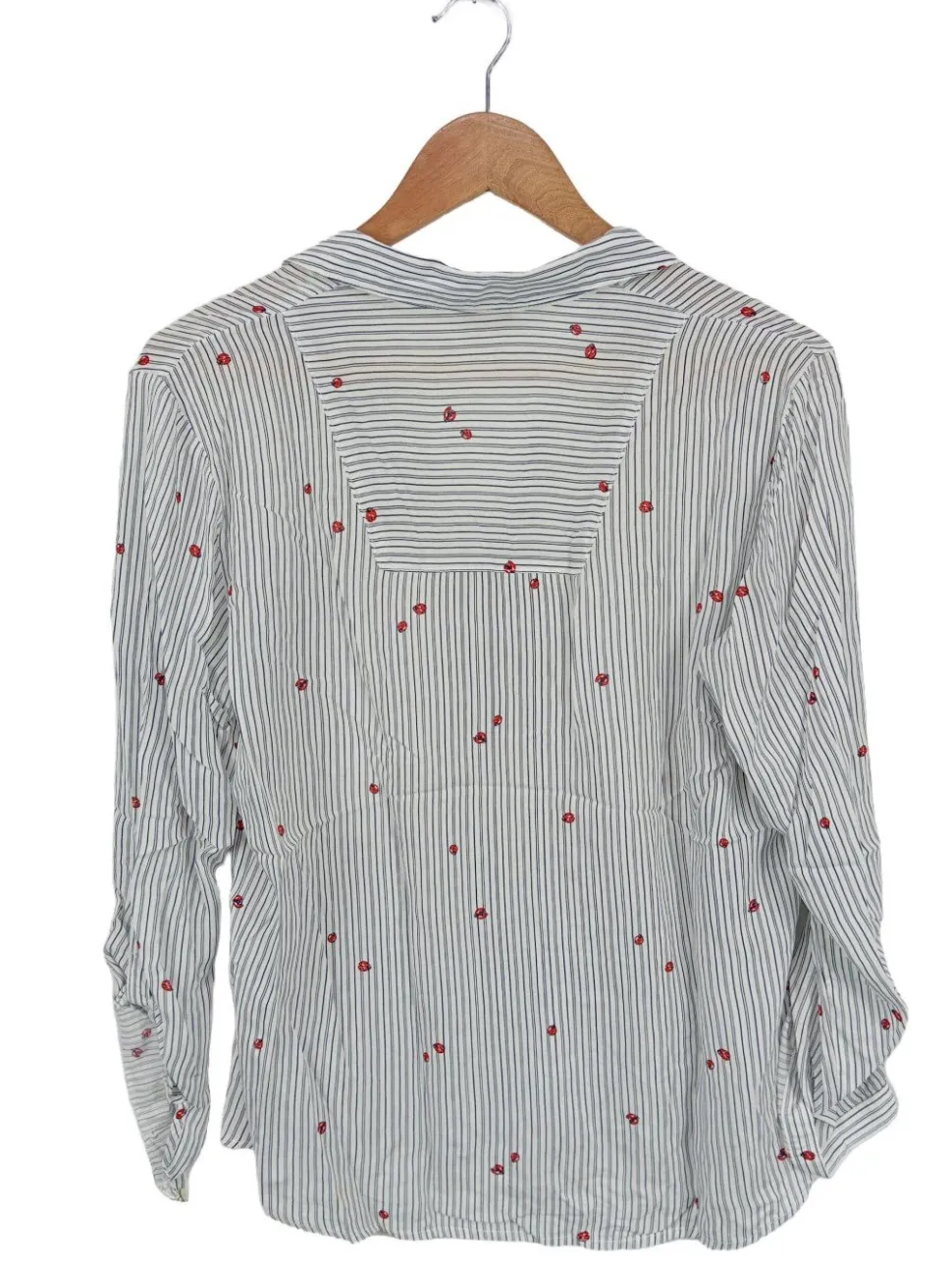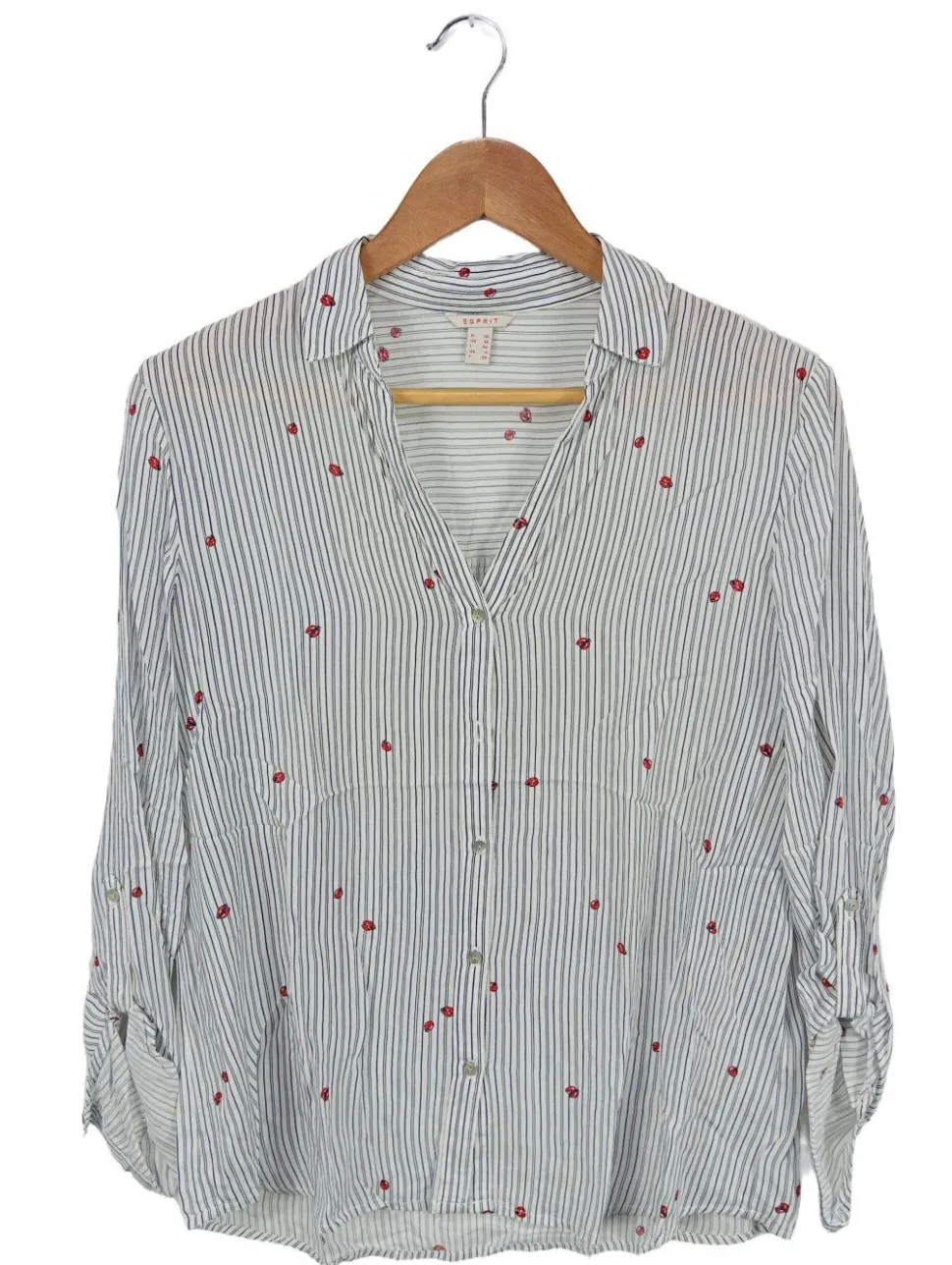 - V-Ausschnitt, Umlegekragen, Ärmellaschen (innen zum Hochkrempeln), Knopfverschluss, Streifenmuster, Casual-Look, schlichter Stil