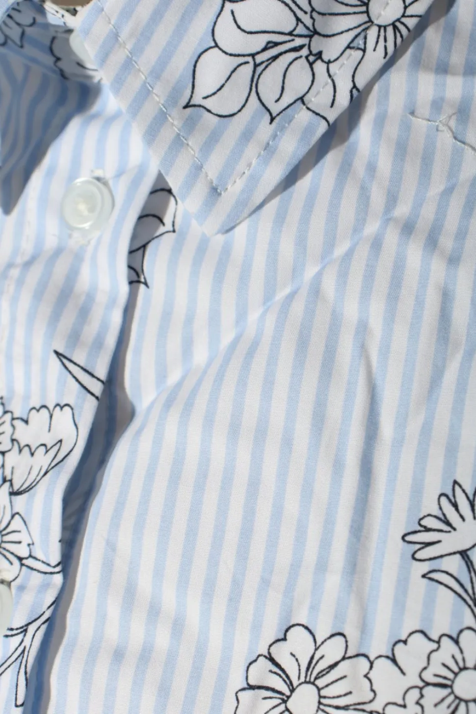 - Hemdkragen, Raffung am Ärmelsaum, Knopfverschluss, Allover-Druck, Blumenmuster, Streifenmuster, Casual-Look, schlichter Stil