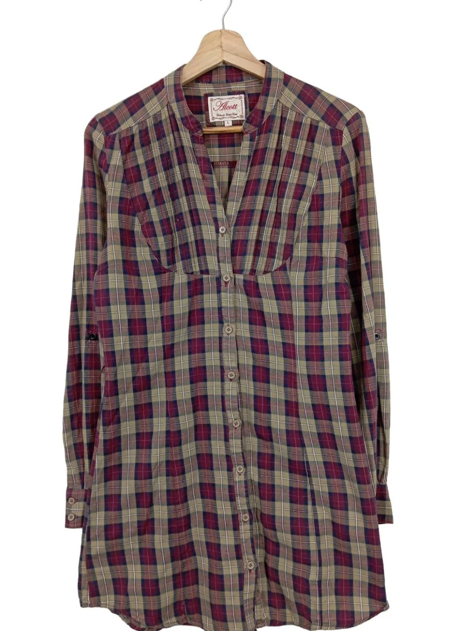 - Alcott Hemdblusenkleid, wollweiß-lila Karomuster