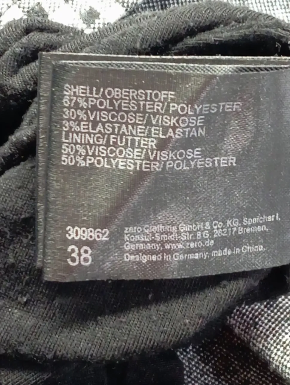 - Außenmaterial: 67% Polyester, 30% Viskose, 3% Elasthan