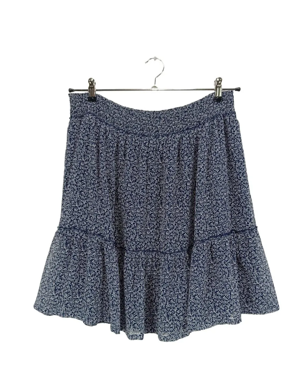 - edc High Waist Rock, blau-weiß Allover-Druck