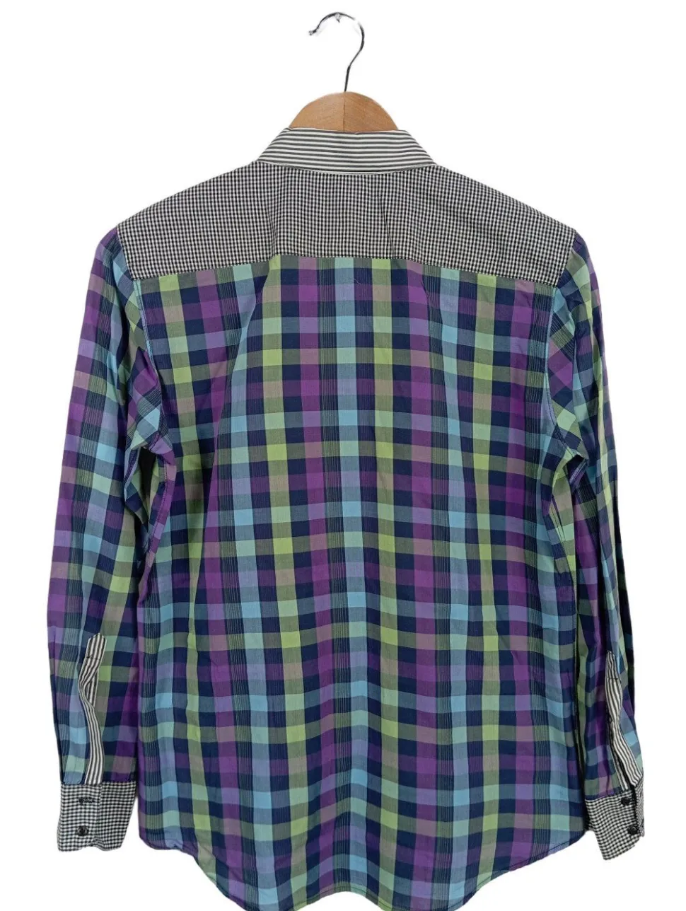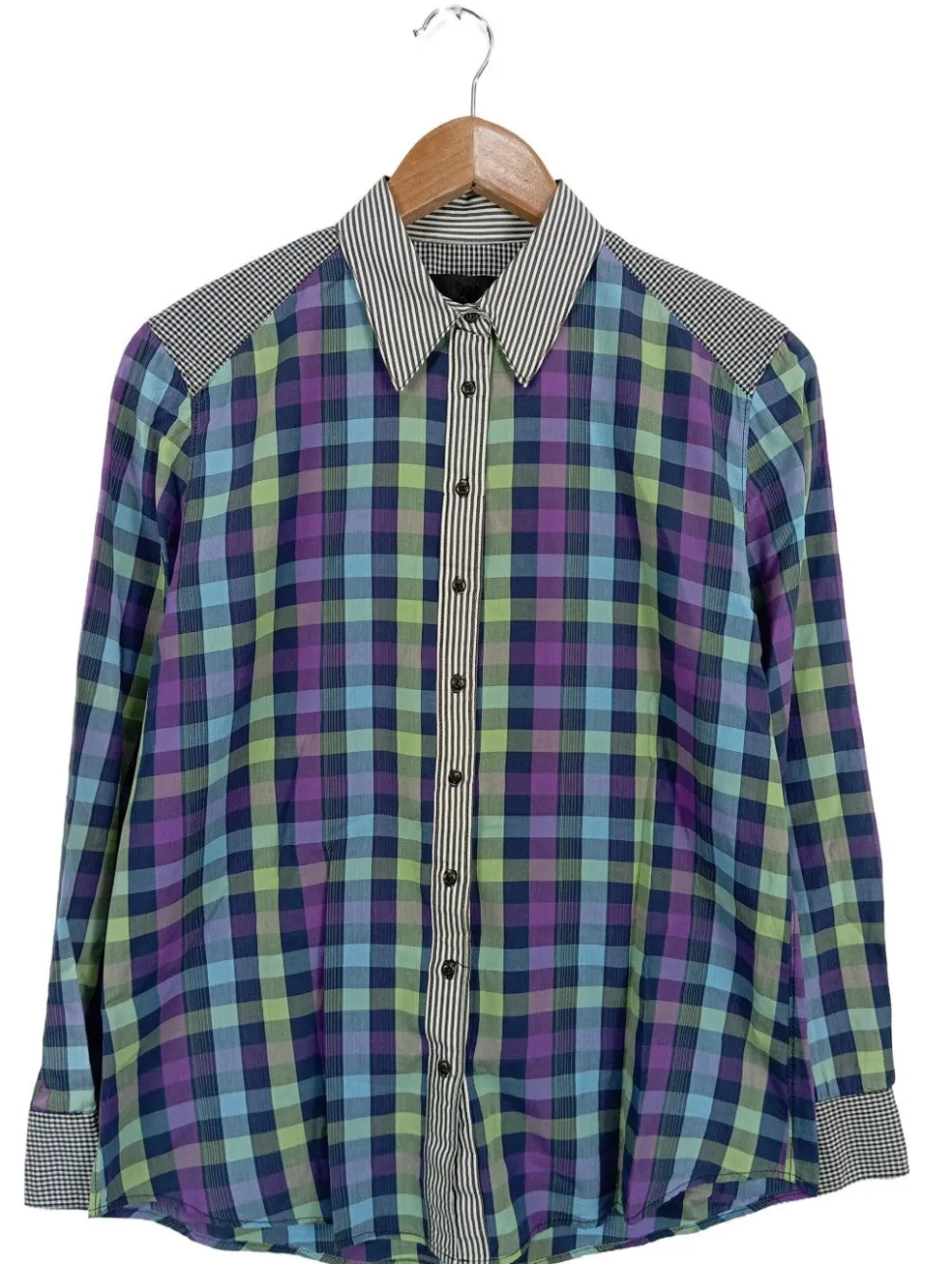 - Knopfleisten-Ausschnitt, Hemdkragen, Knopfverschluss am Ärmelsaum, Knopfverschluss, Karomuster, Casual-Look, schlichter Stil, Vintage-Look
