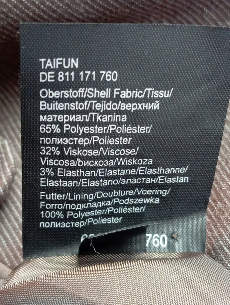 - Außenmaterial: 65% Polyester, 32% Viskose, 3% Elasthan