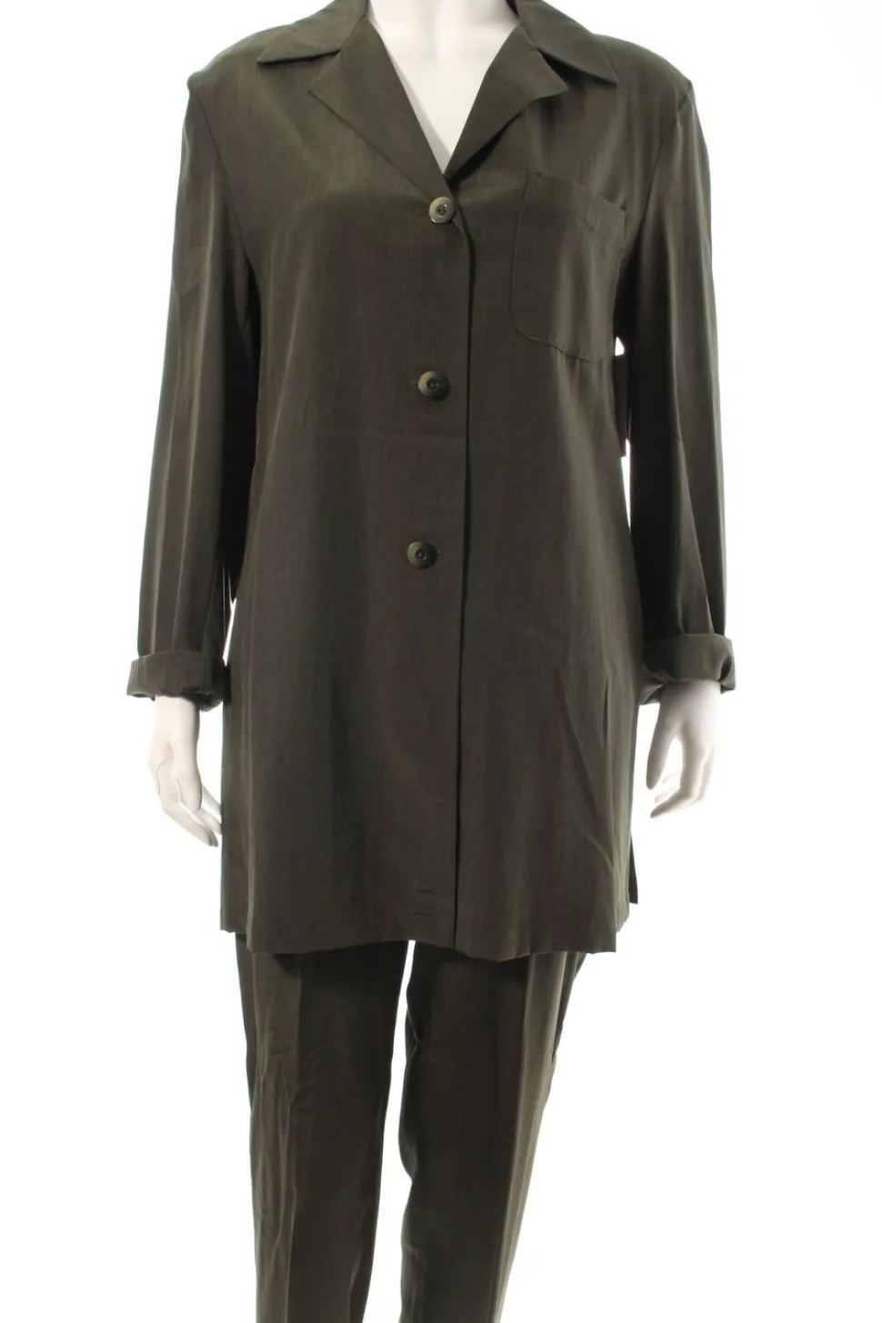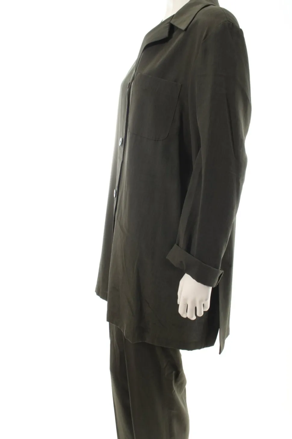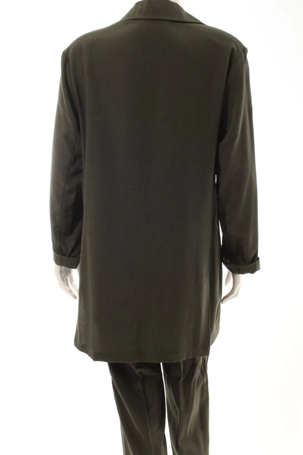 - V-Ausschnitt, Reverskragen, zwei Schlitze rückseitig, Hosenreißverschluss, Knopfverschluss, aufgesetzte Tasche (einzeln), Eingriffstaschen, glatt, leicht, schlichter Stil