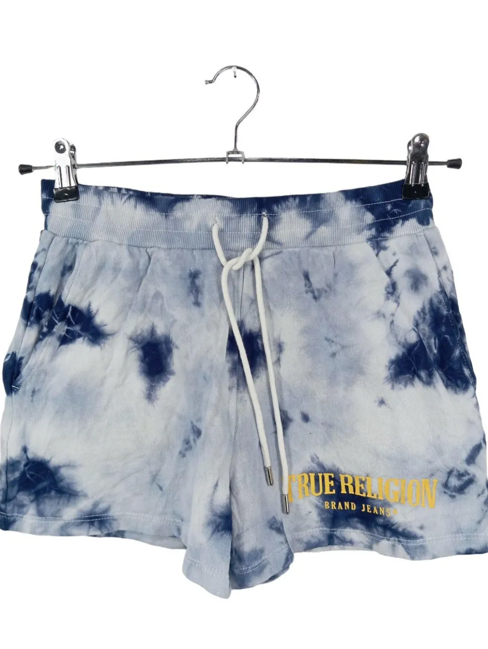 - True Religion Hot Pants, blau-weiß Allover-Druck