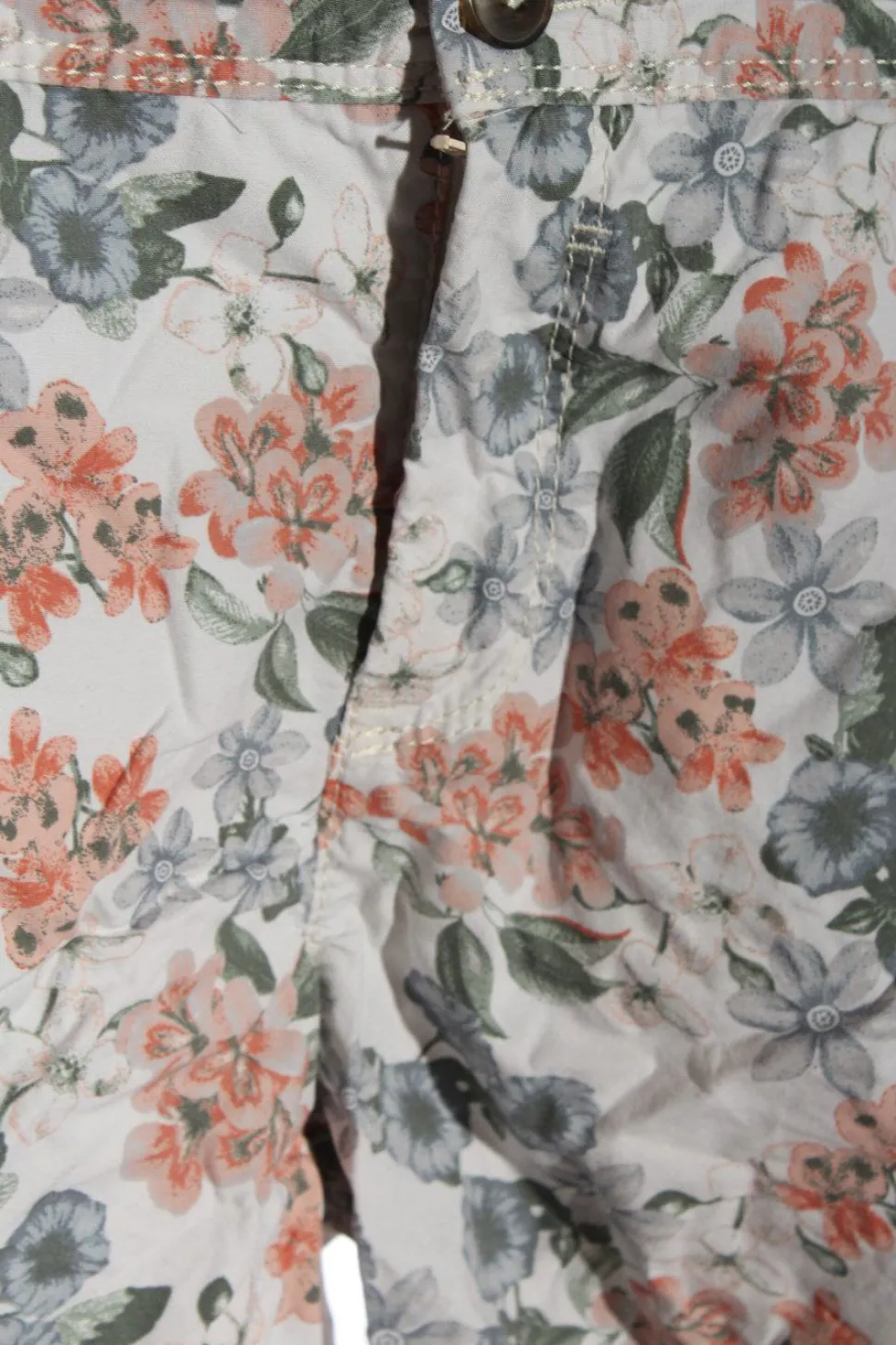 - Knopfverschluss, Eingriffstaschen, Gesäßtaschen, Leistentaschen, Allover-Druck, Blumenmuster, Elegant