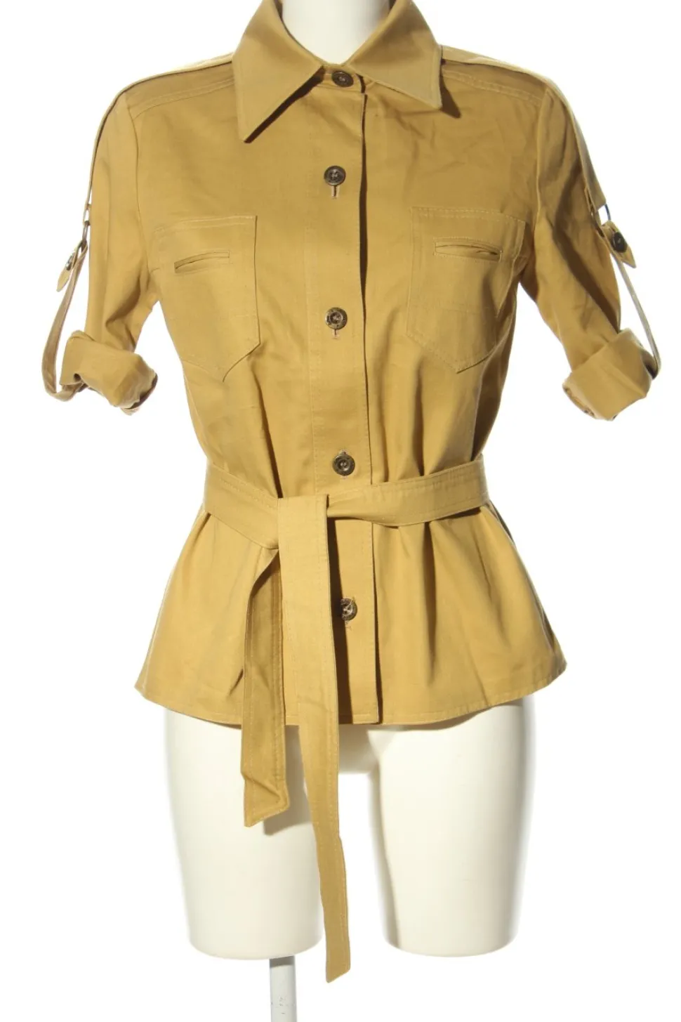 - Umlegekragen, Ärmellaschen (innen zum Hochkrempeln), Knopfverschluss, Schleifenverschluss, aufgesetzte Taschen, Paspeltaschen, Casual-Look, schlichter Stil, Street-Fashion-Look