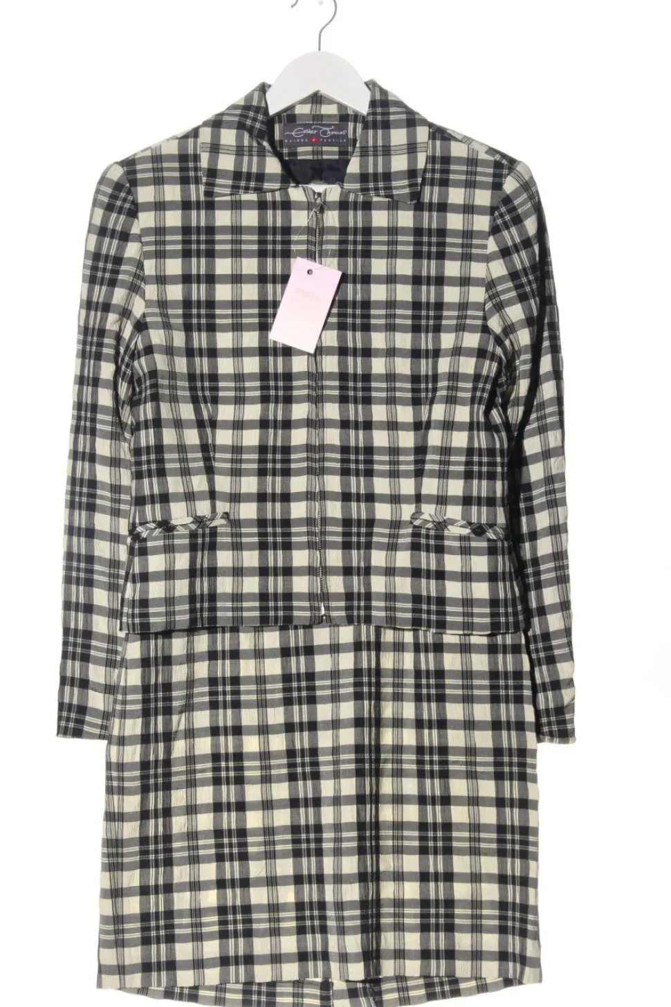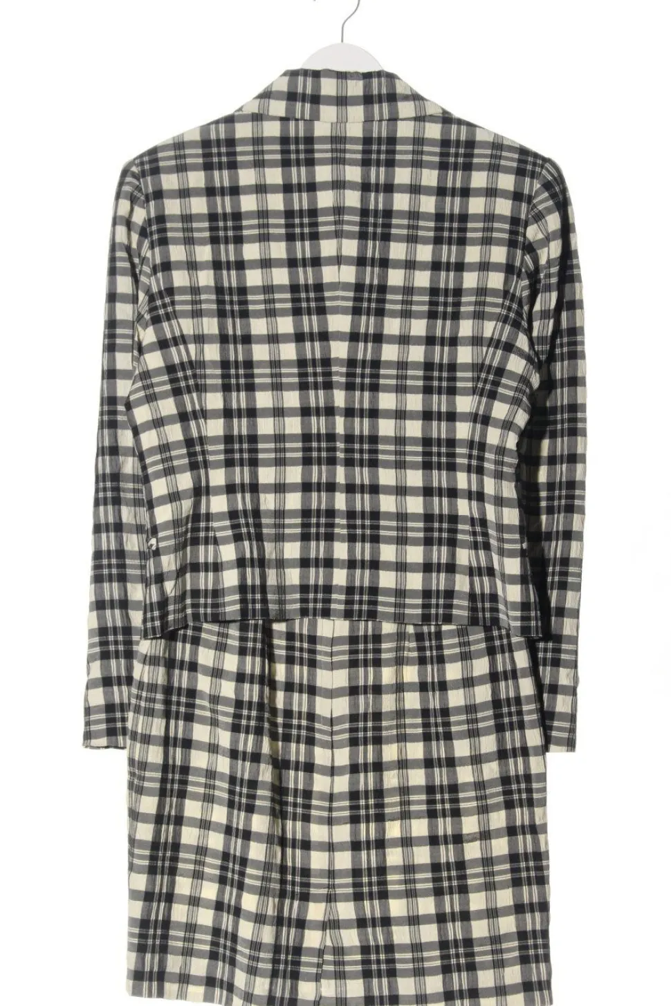 - Esther Thomas Jersey Twin Set, weiß-schwarz Karomuster