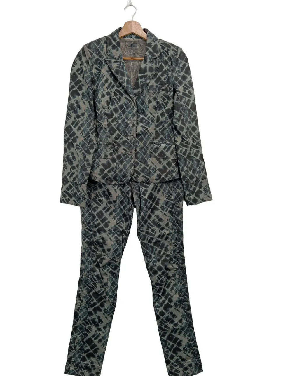 - Nile Jersey Twin Set, hellgrau-schwarz abstraktes Muster