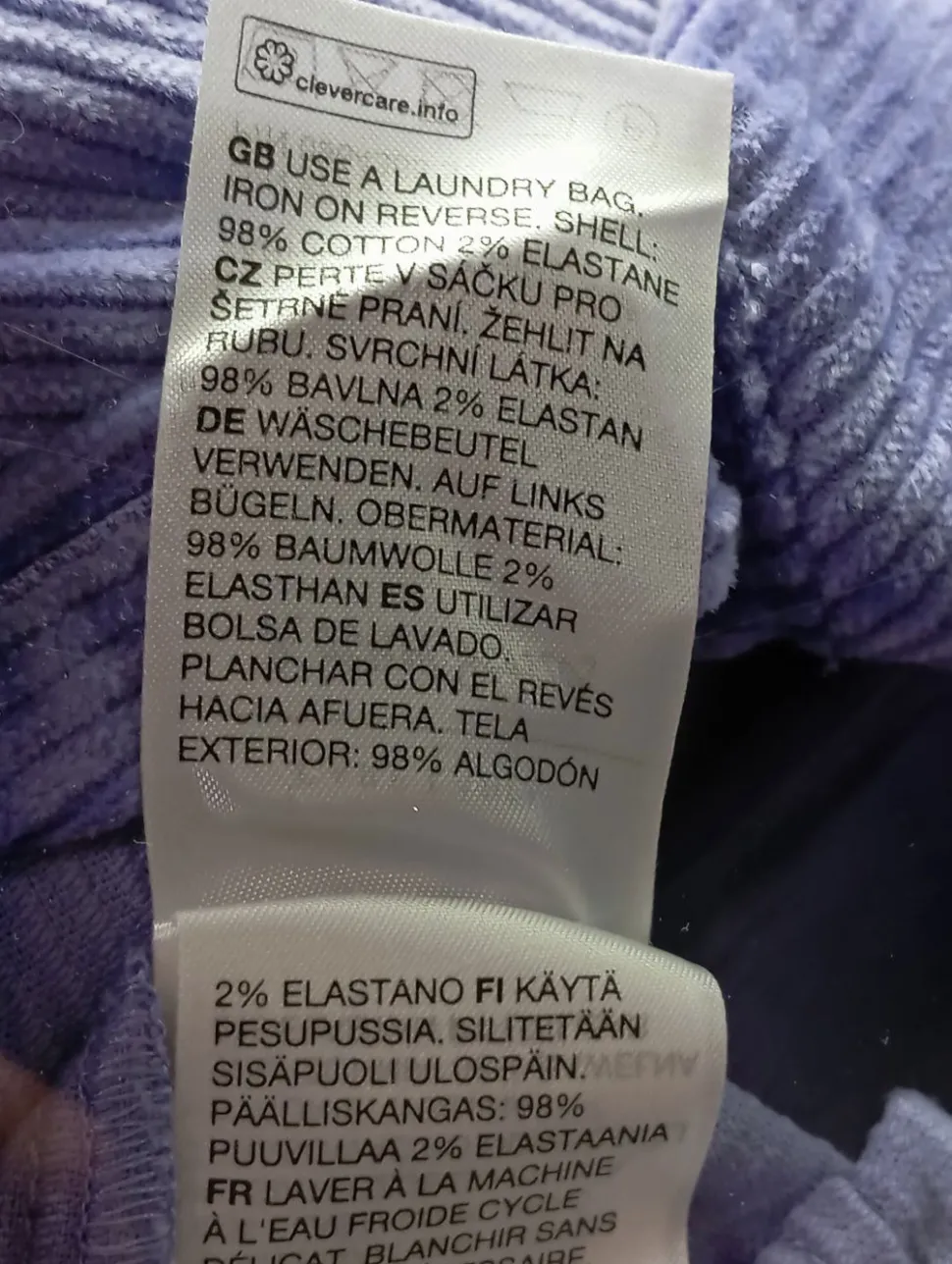 - Außenmaterial: 98% Baumwolle, 2% Elasthan