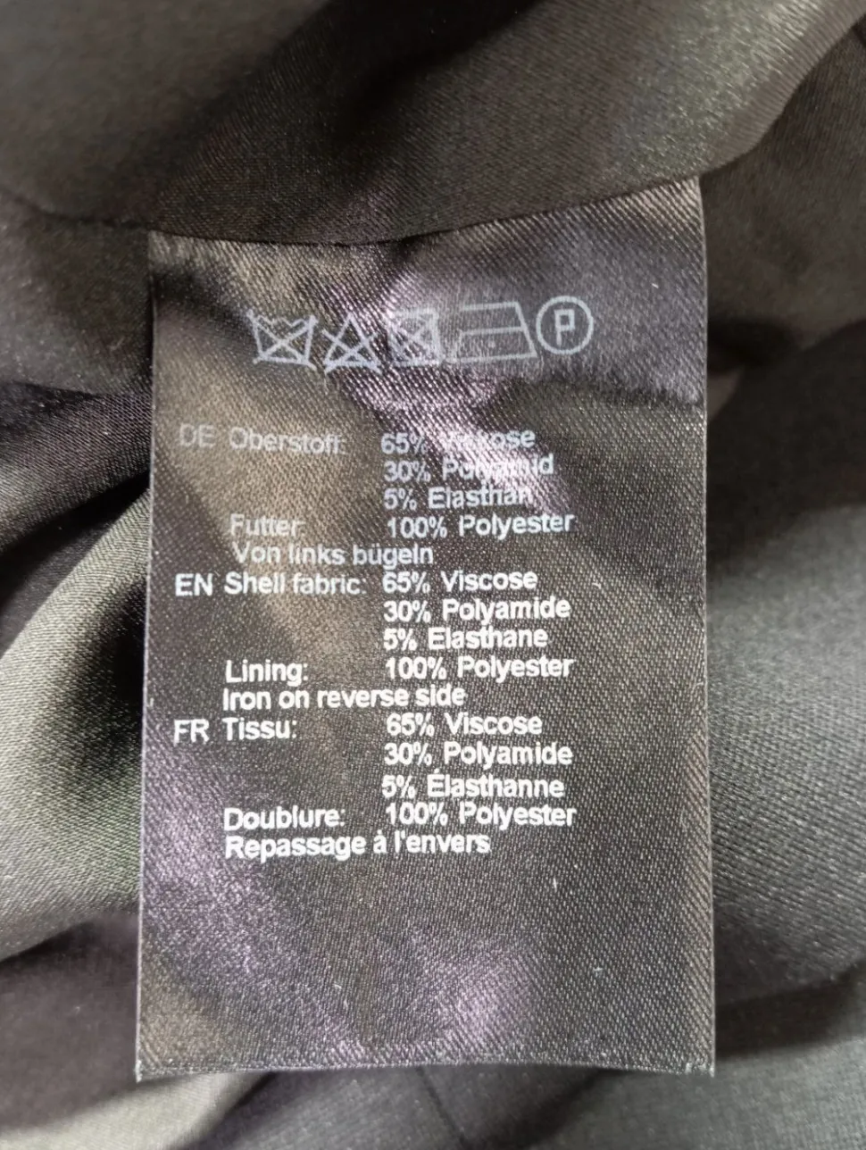 - Außenmaterial: 65% Viskose, 30% Polyamid, 5% Elasthan