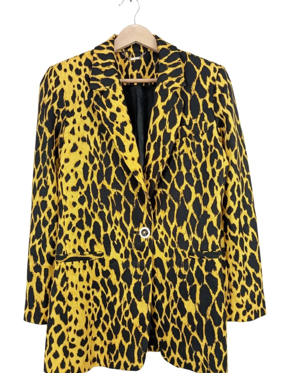 - Versace Klassischer Blazer, blassgelb-schwarz Allover-Druck