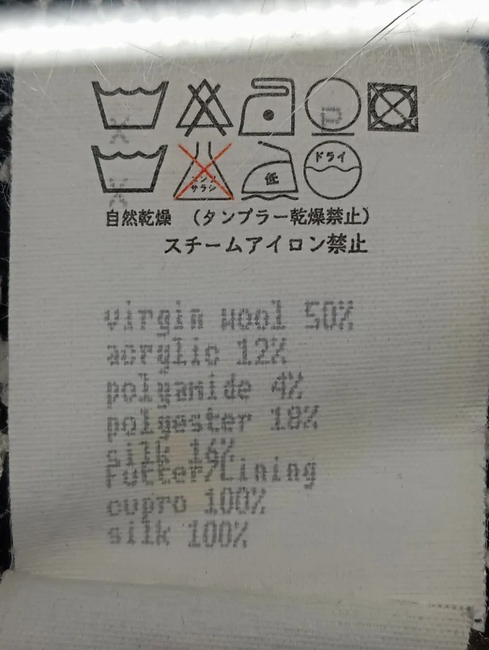 - Außenmaterial: 50% Wolle, 18% Polyester, 16% Seide, 12% Polyacryl, 4% Polyamid