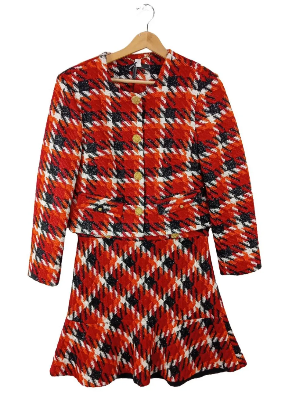 - Rundhalsausschnitt, Bund am Ärmelsaum, Knopfverschluss, Pattentaschen, Taschen mit Druckknopfverschluss, Karomuster, Casual-Look, Vintage-Look