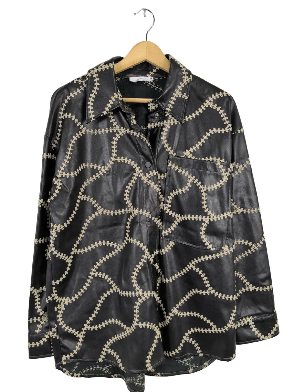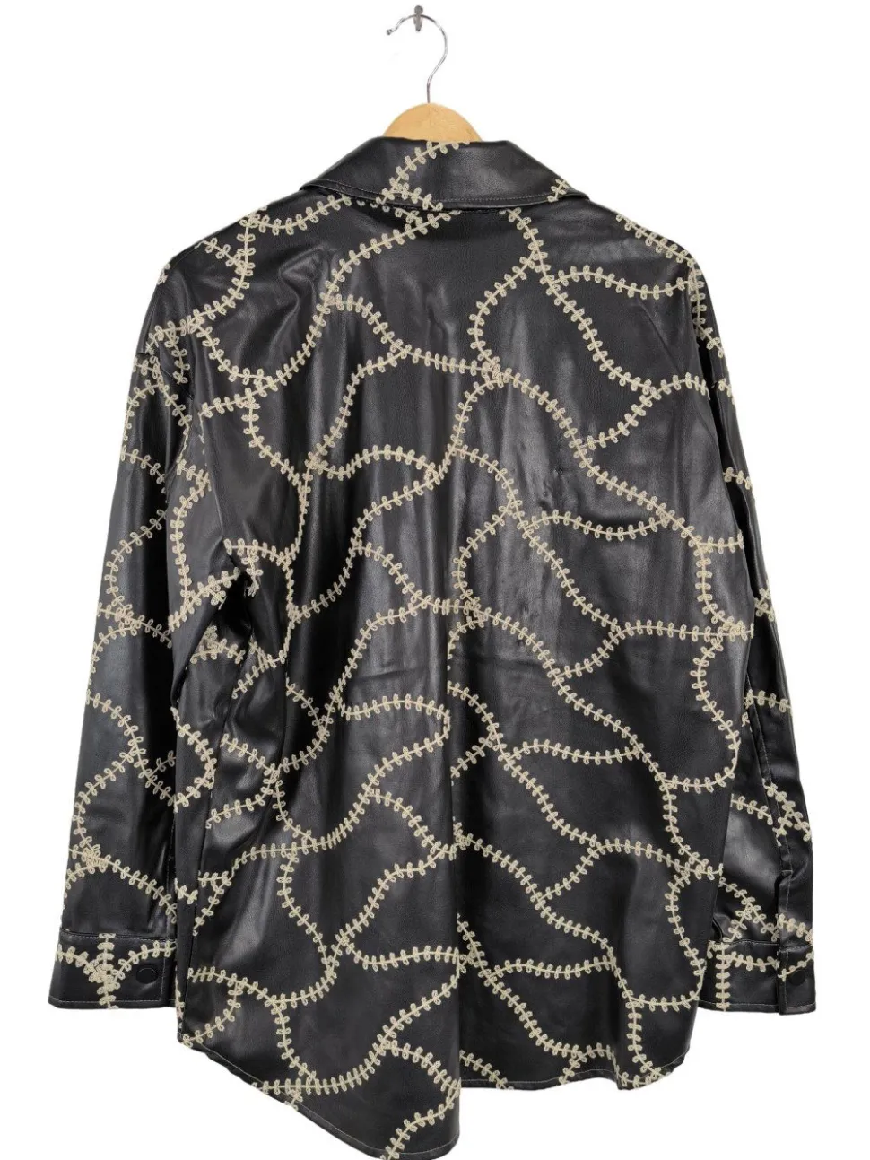 - Reserved Kunstlederjacke, schwarz-wollweiß abstraktes Muster