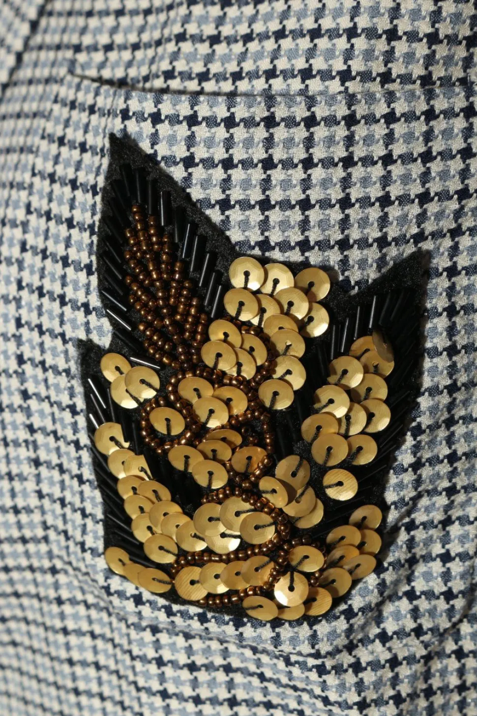 - Custommade Kurz-Blazer, weiß-blau Allover-Druck