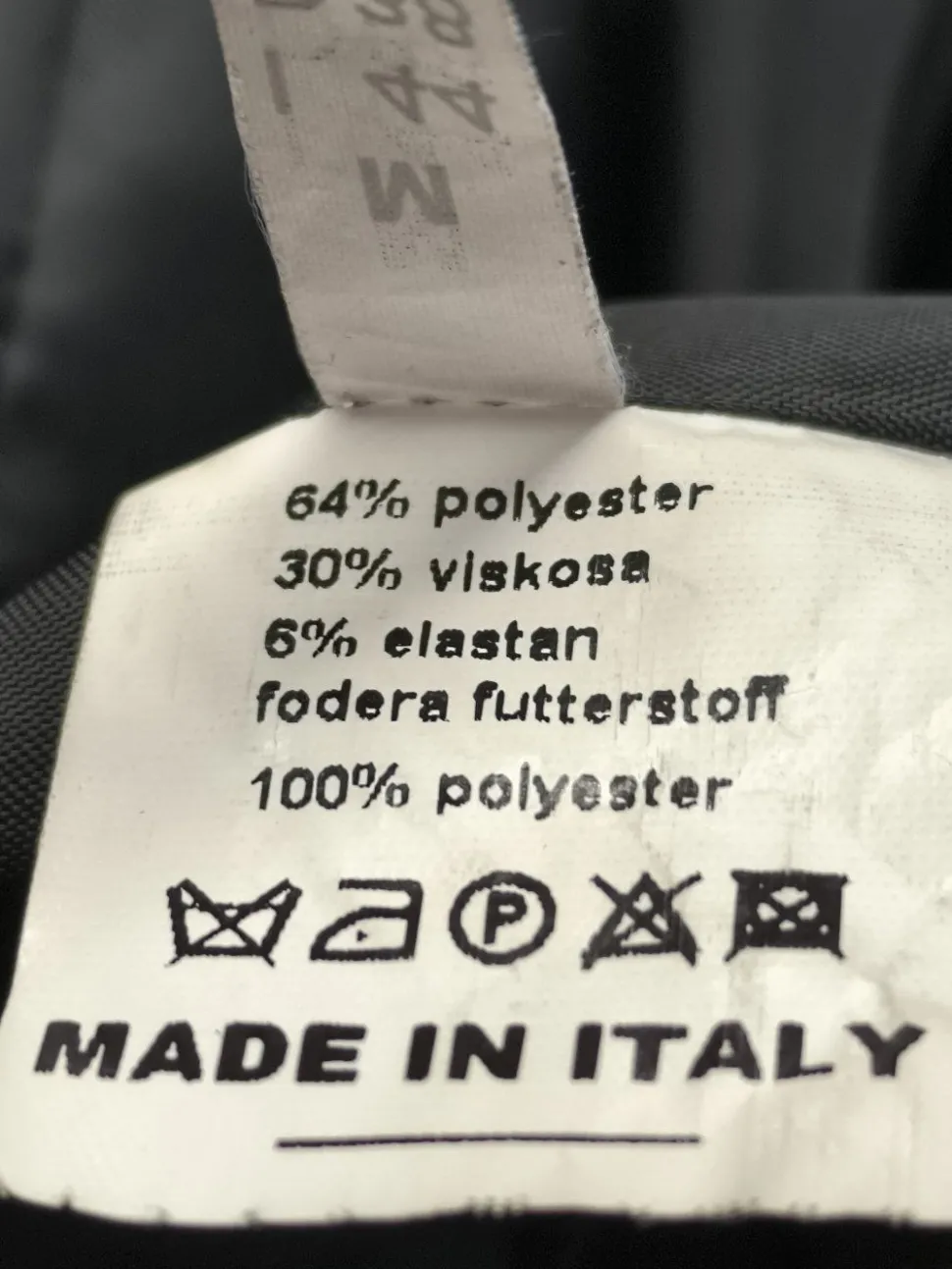 - Außenmaterial: 64% Polyester, 30% Viskose, 6% Elasthan