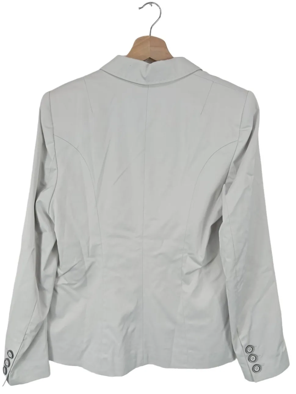 - V-Ausschnitt, Umlegekragen, Knopfverschluss am Ärmelsaum, doppelreihiger Knopfverschluss, Knopfverschluss, aufgesetzte Taschen, Leistentaschen, Business-Look, klassischer Stil