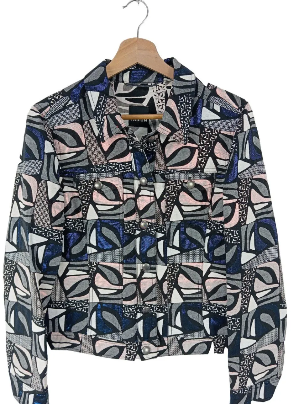 - Umlegekragen, Knopfverschluss am Ärmelsaum, Knopfverschluss, aufgesetzte Pattentaschen, Taschen mit Knopfverschluss, Allover-Druck, grafisches Muster, Casual-Look, schlichter Stil