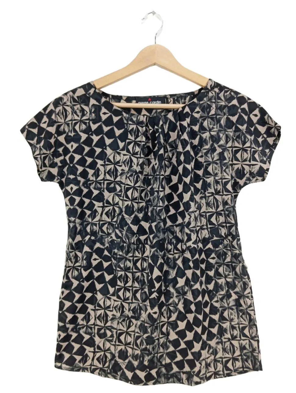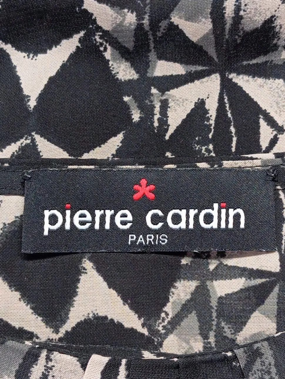 - Pierre Cardin Kurzarm-Bluse, schwarz-wollweiß Allover-Druck