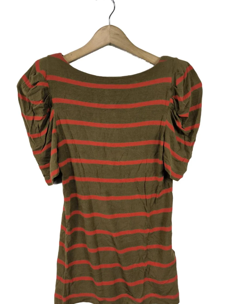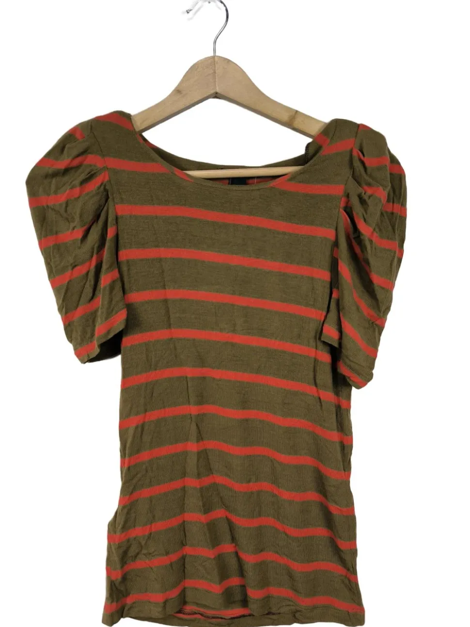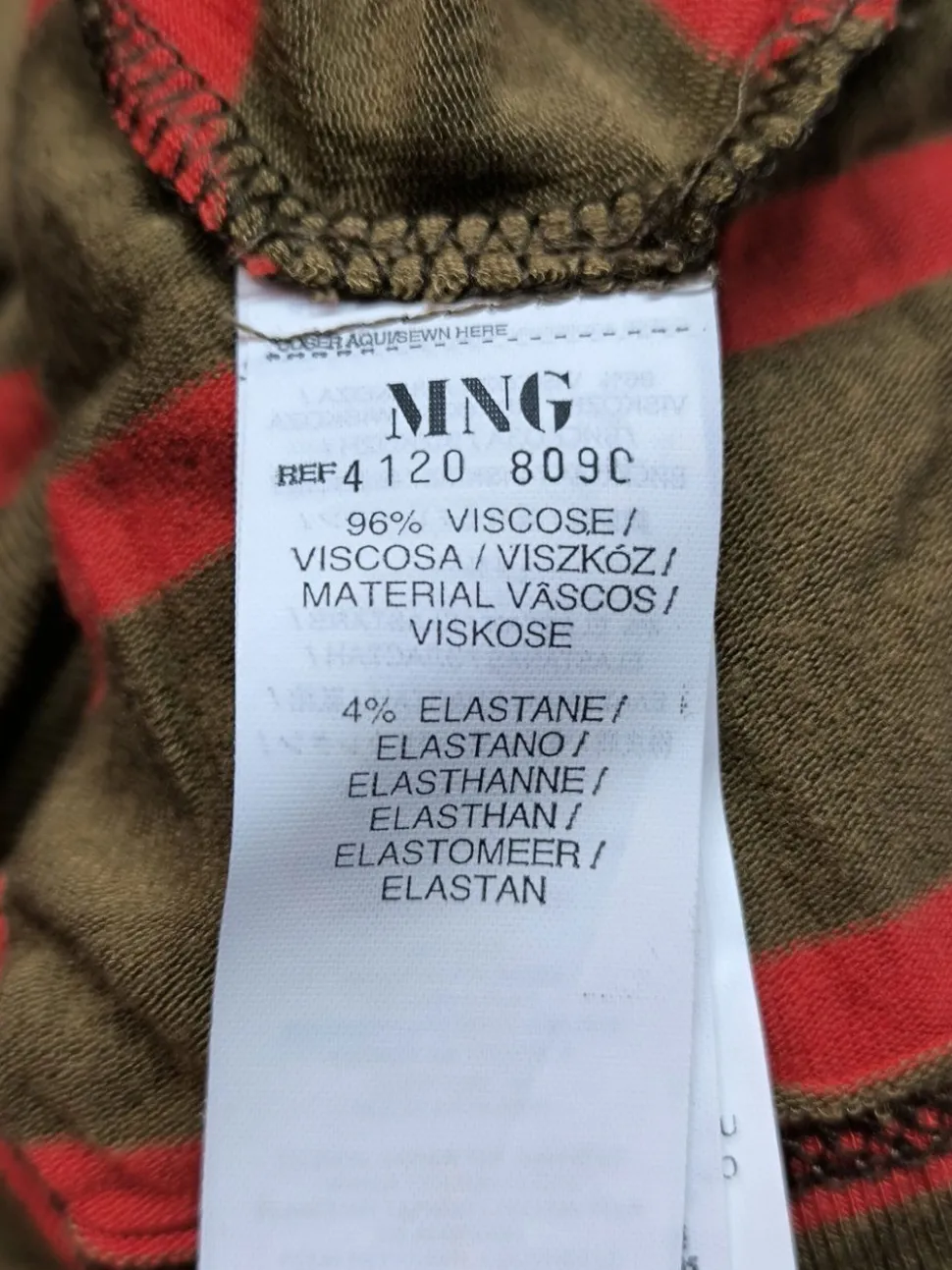 - MNG Collection Kurzarm-Bluse, khaki Streifenmuster