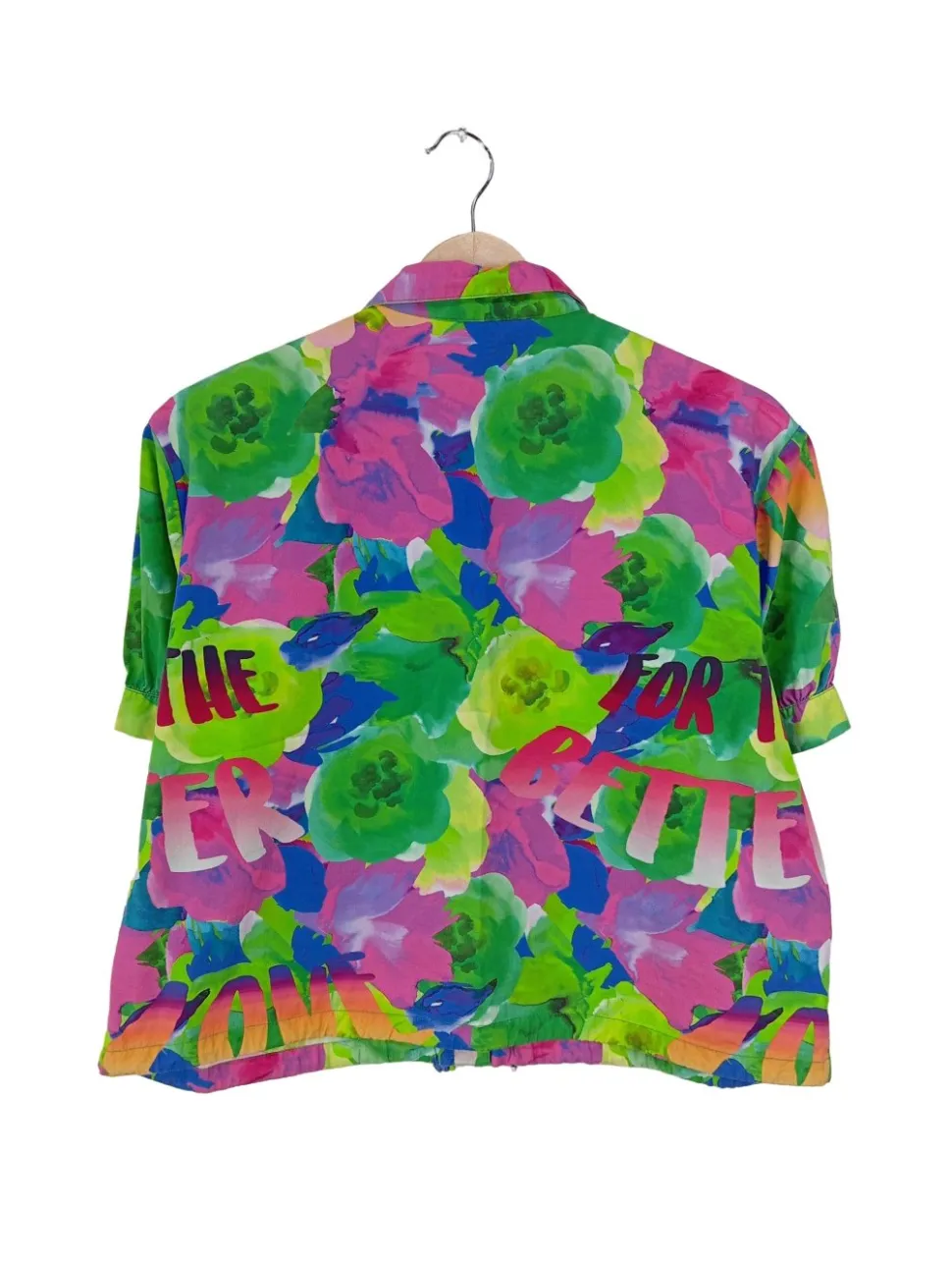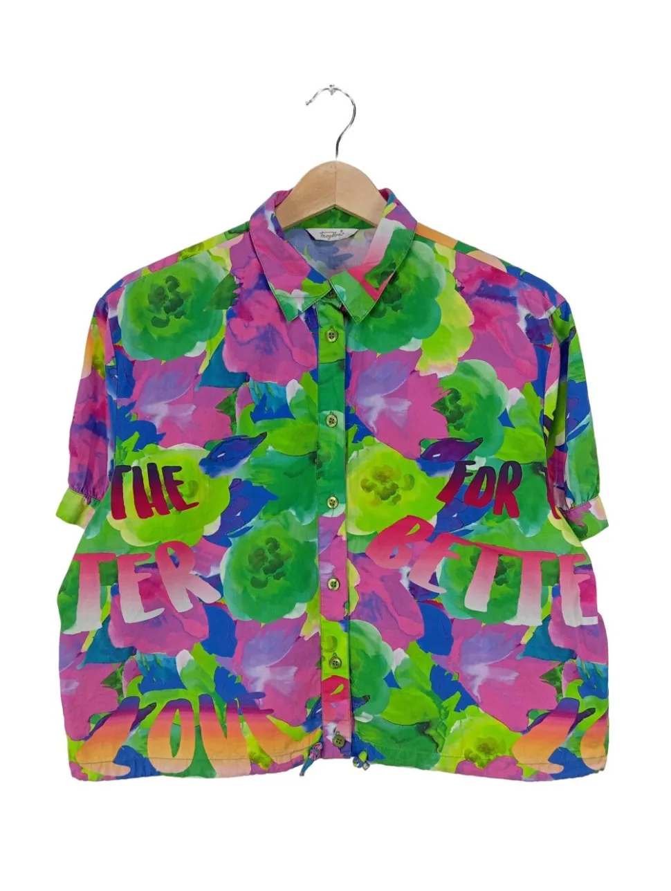 - Hemdkragen, Bund am Ärmelsaum, Knopfverschluss, abstraktes Muster, Schriftzug gedruckt, Casual-Look, Street-Fashion-Look
