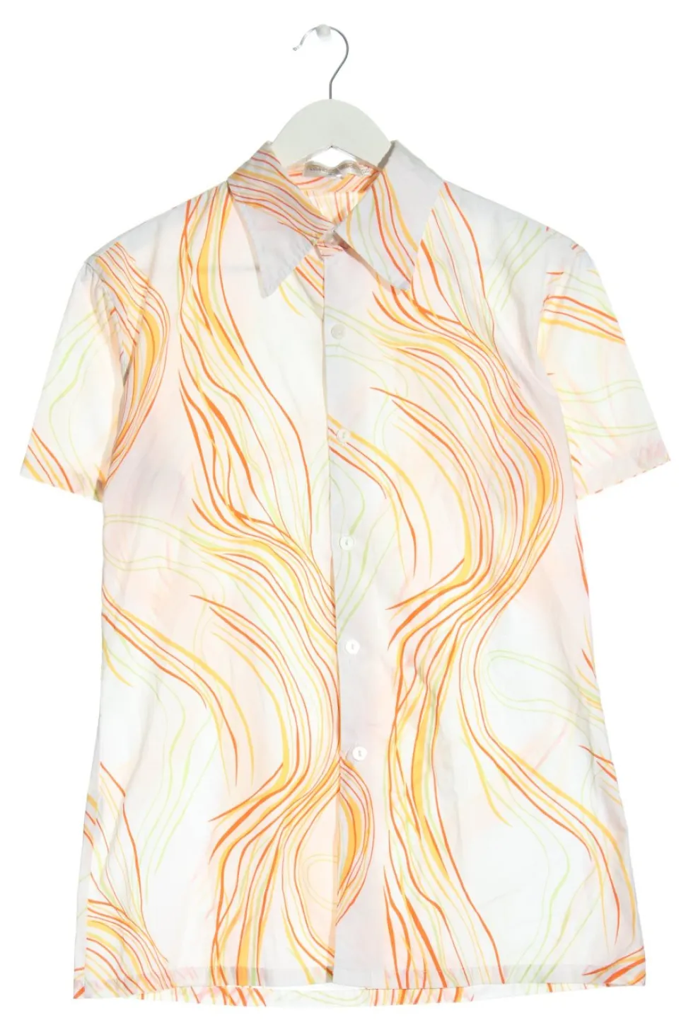 - Kurzarmhemd, weiß-hellorange abstraktes Muster