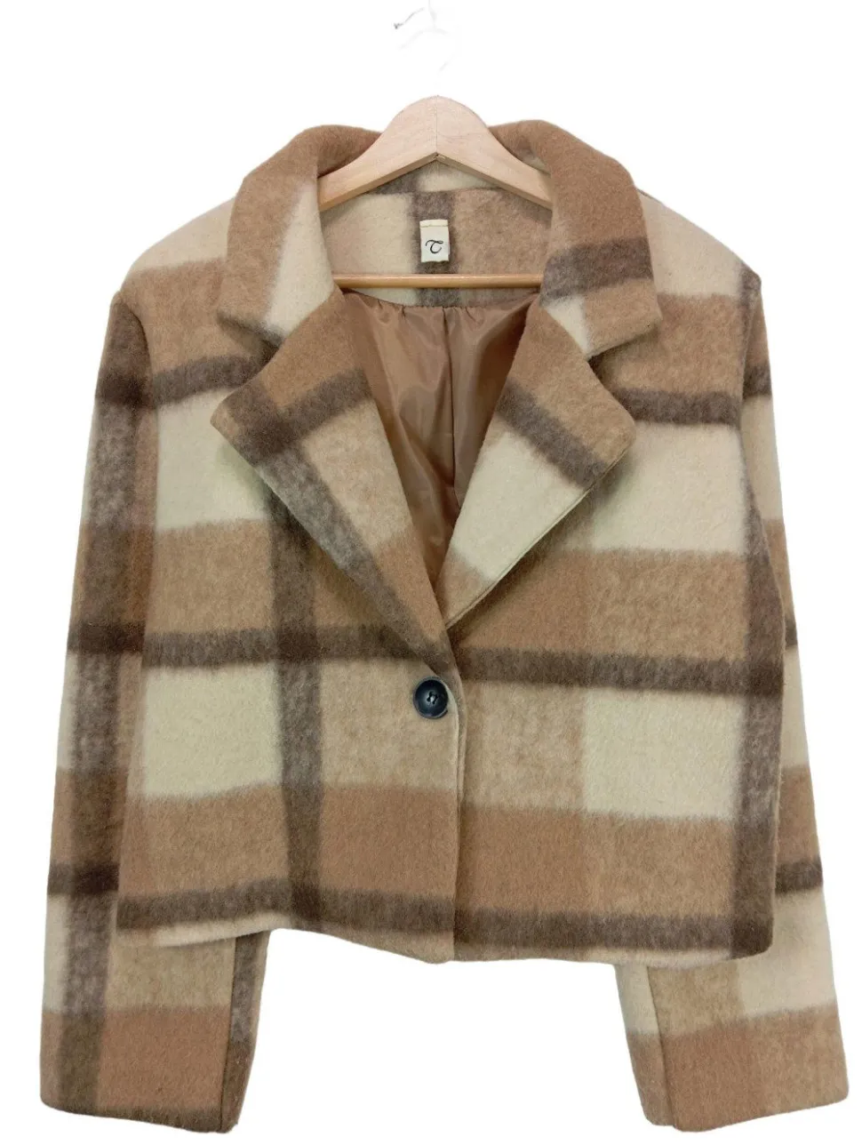 - tiefer V-Ausschnitt, Umlegekragen, Bund am Ärmelsaum, Knopfverschluss, Karomuster, Casual-Look, Street-Fashion-Look