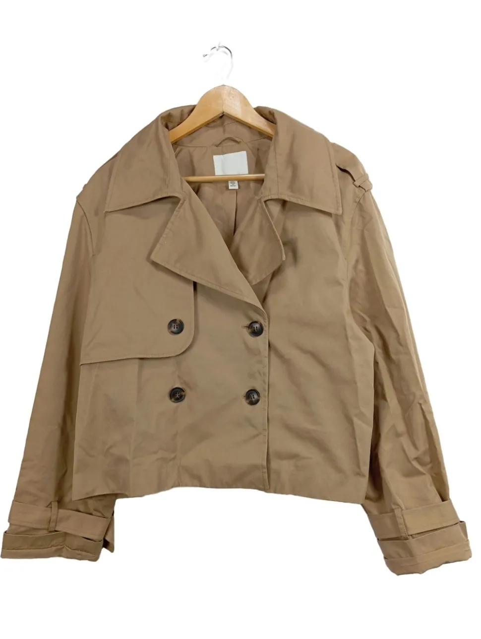 - V-Ausschnitt, Reverskragen, Ärmelriegel, Knopfverschluss, Casual-Look, Street-Fashion-Look