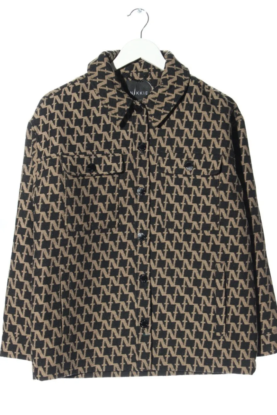 - Nikkie Kurzmantel, schwarz-creme Allover-Druck