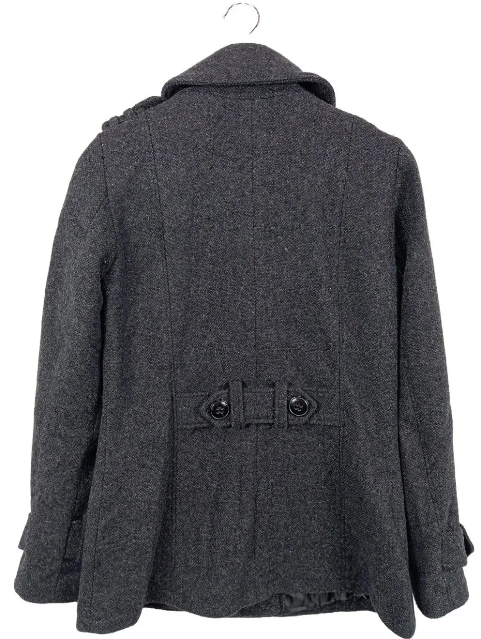 - V-Ausschnitt, Reverskragen, Ärmelriegel, doppelreihiger Knopfverschluss, Knopfverschluss, Nahteingriffstaschen, meliert, Casual-Look, Street-Fashion-Look, Vintage-Look